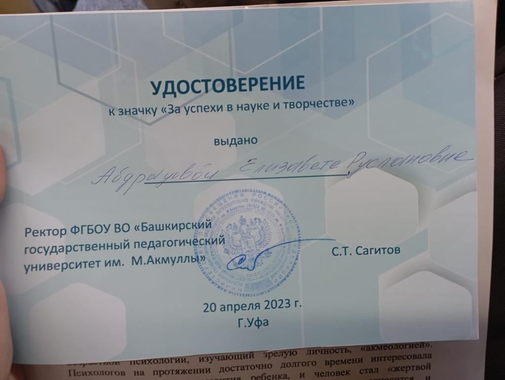 В рамках мероприятий конференции со своими научными докладами выступили студенты колледжа БГПУ им. М. Акмуллы Анастасия Дмитриева (группа 9ГД-11) и Елизавета Абдрауова (группа 9ПСО-11). В качестве поощрения за научно-исследовательскую деятельность наши студенты были награждены нагрудными знаками «За успехи в науке и творчестве». По итогам конференции будет опубликован сборник научных статей молодых учёных.