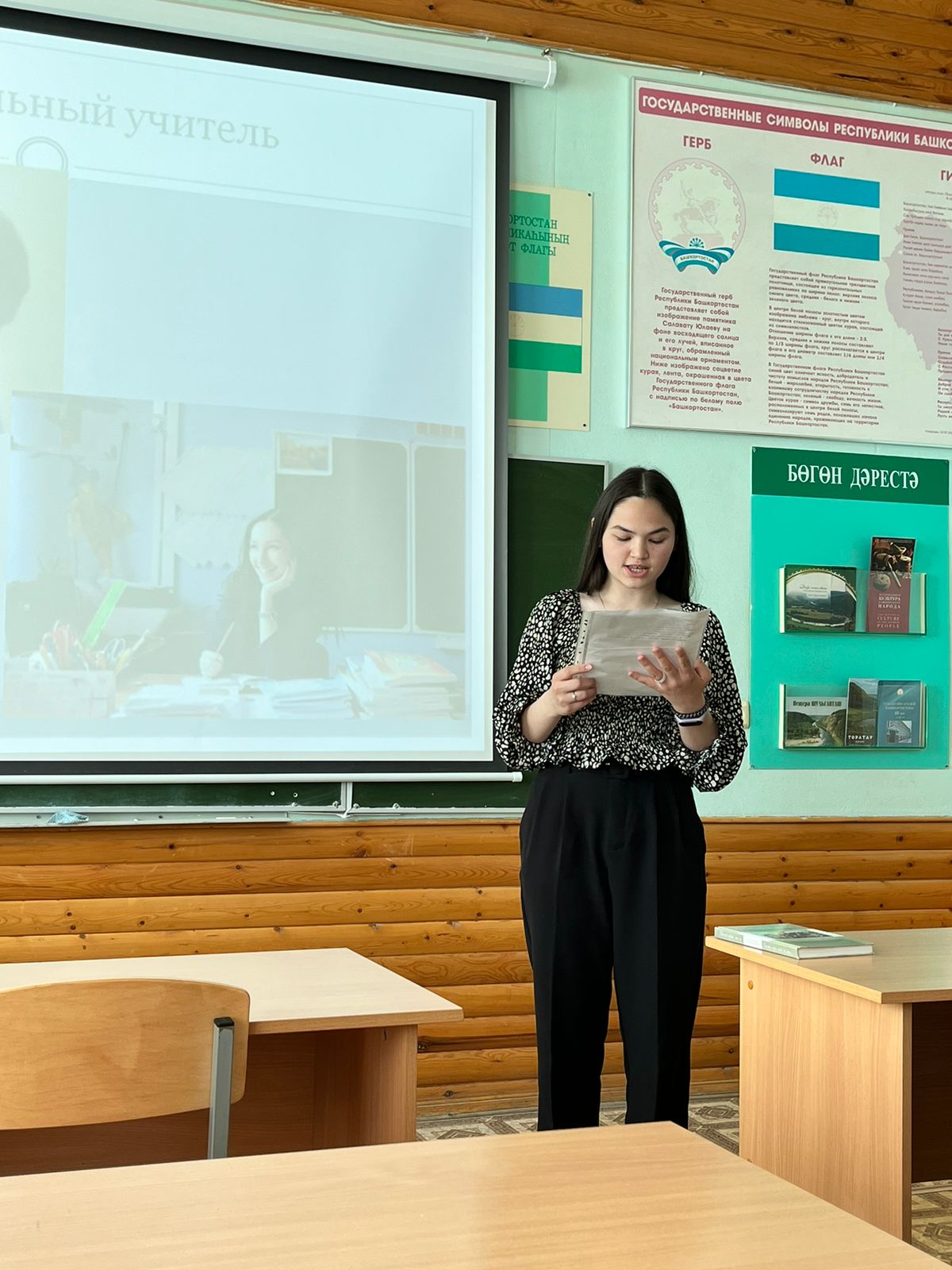 В начале куратор группы Алсу Ануровна рассказала о том, что решение посвятить это 2023 год Учителю еще раз подтверждает значимость для общества гуманистической миссии, которая лежит в основе профессии. Ведь именно талантливый педагог, опытный наставник открывает детям путь к познанию и развитию, достижениям и открытиям. Учитель формирует ценностные ориентиры, ищет в каждом ребенке зерна таланта, позволяет совершать ошибки, чтобы найти себя и свое призвание, стать счастливым и самодостаточным человеком, мотивированным профессионалом.