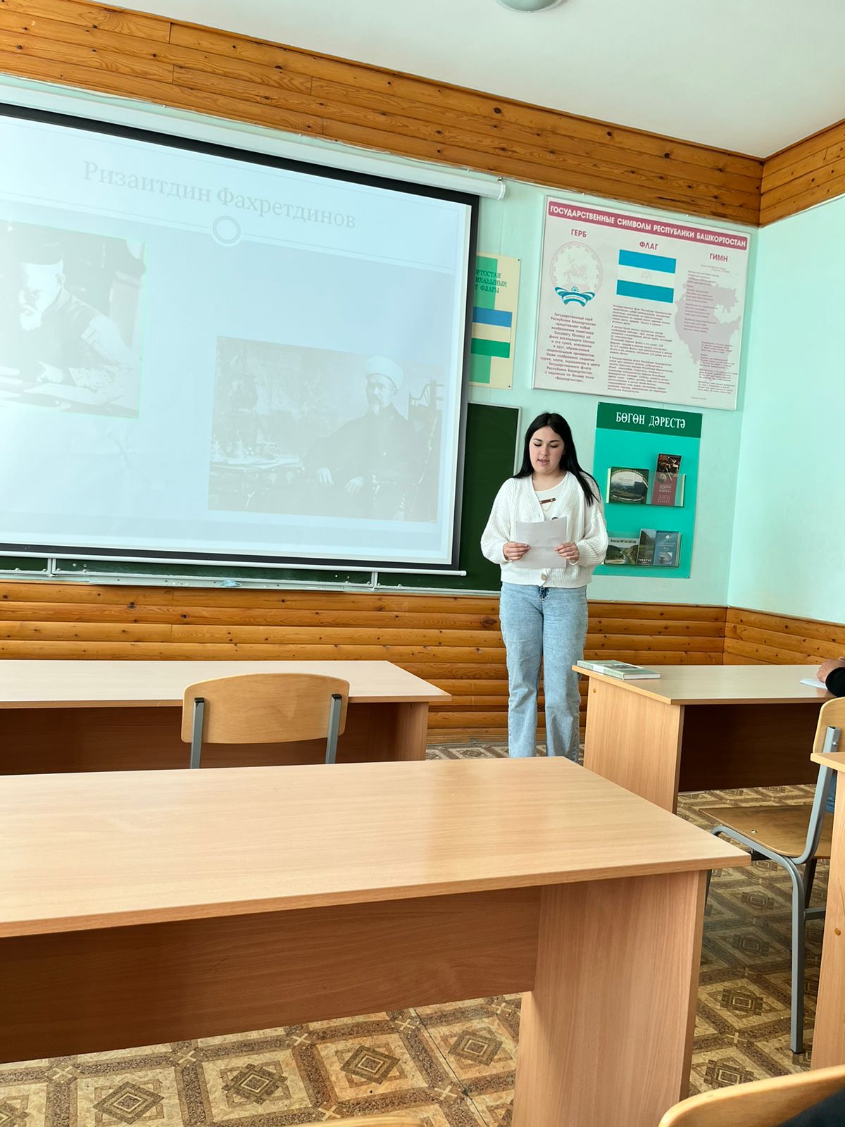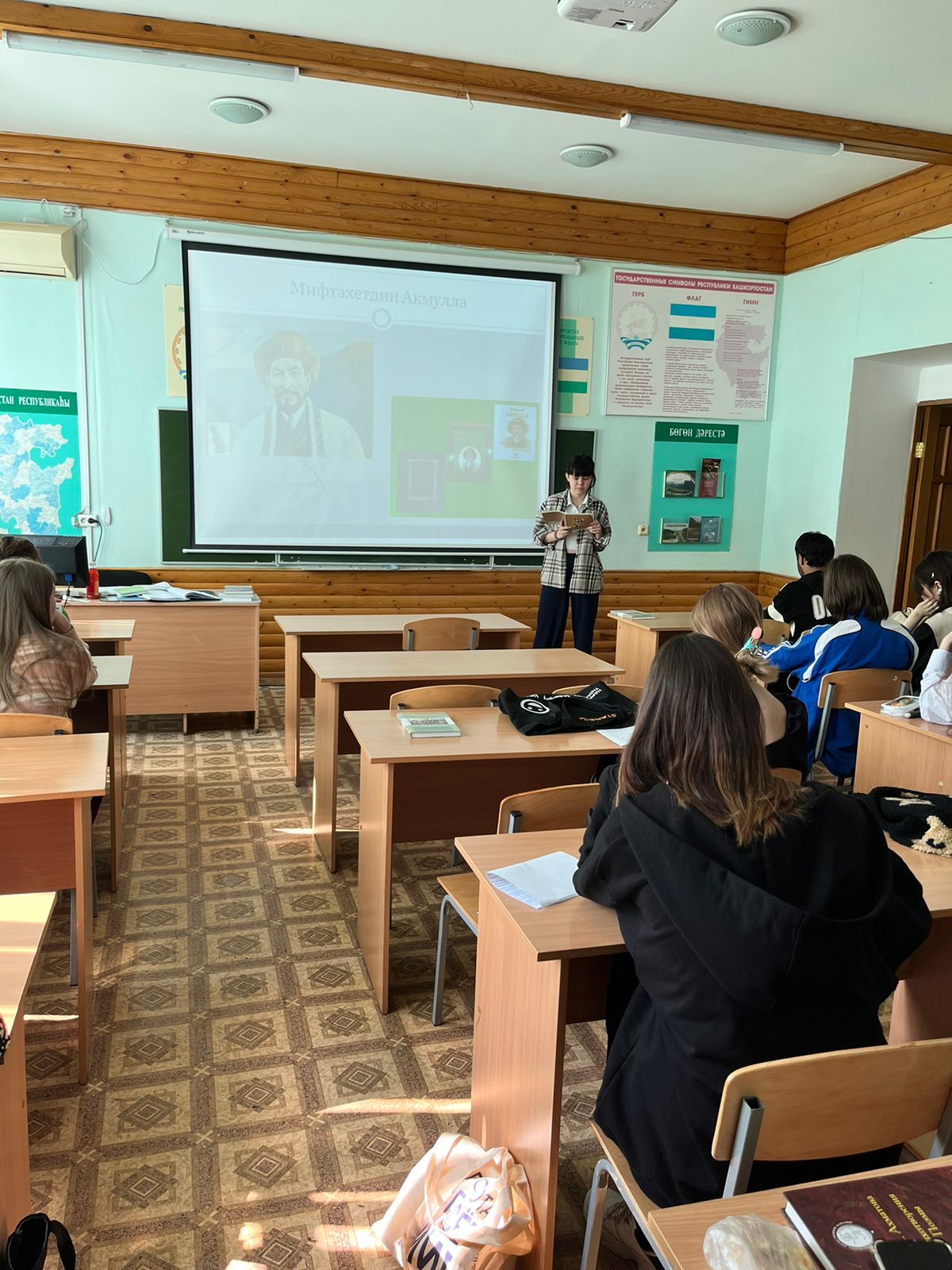 После музыкальной паузы куратор вместе с группой приступили к изучению биографии и творческого пути известных башкирских писателей и поэтов, выдающихся просветителей и наставников своего народа как Мифтахетдин Акмулла, Ризаитдин Фахретдинов и Мухаметсалим Уметбаев. Известно, что Акмулла своей поэзией прививал землякам чувство достоинства, отстаивал личную независимость и отстаивать свои права. Он продвигал в неграмотной крестьянской среде жажду знаний, требования расширения кругозора, и прививал ценность просвещения.