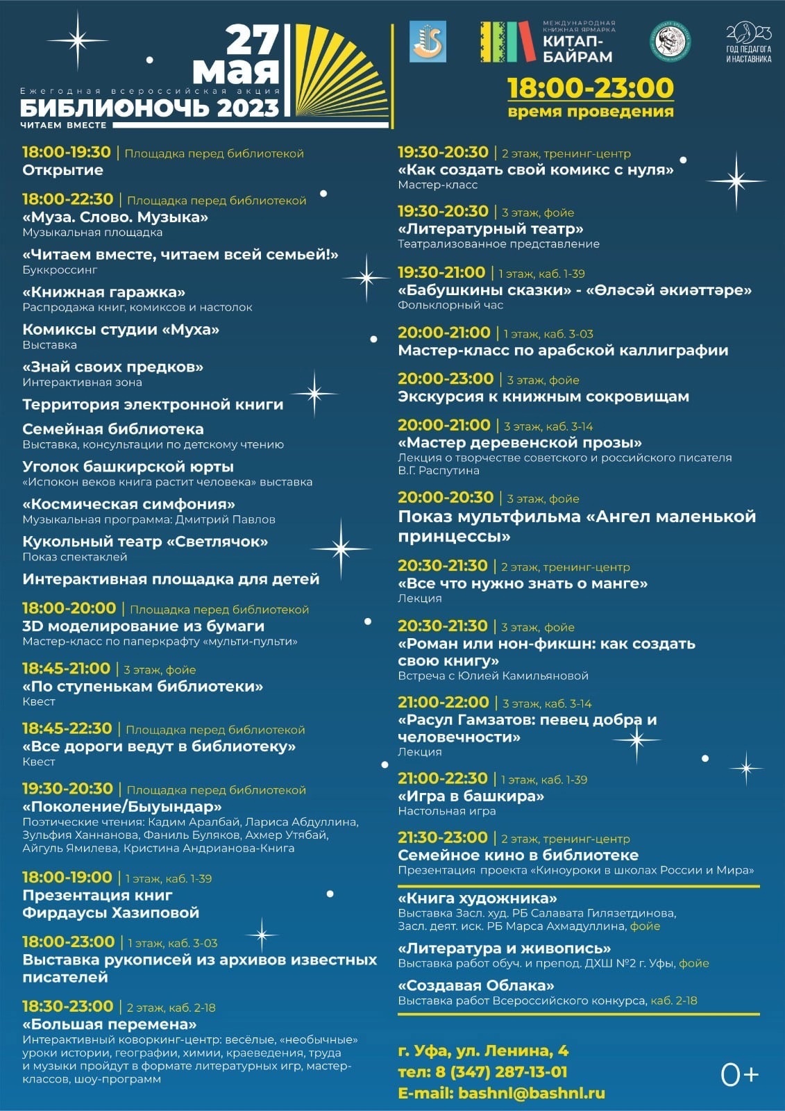 В 2023 г. Библионочь проходит в рамках международной книжной ярмарки «Китап-байрам». Рады сообщить, что работы участников конкурса «Создавая Облака», а среди них есть и студенты Колледжа БГПУ им. М.Акмуллы, будут представлены на выставке в Национальной библиотеке им. А.-З. Валиди (Уфа, Ленина, 4, зал периодических изданий) в рамках Библионочи 2023 (27 мая). Конкурс проводится второй год под эгидой Колледжа БГПУ им. М.Акмуллы, автор и координатор конкурса – преподаватель колледжа Е.Н.Плахутина. Ждем Вас в библиотеке – будет много интересного!