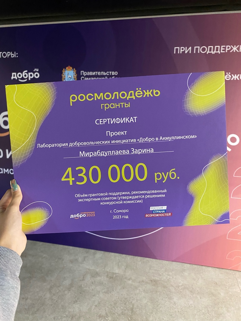 Поздравляем Зарину и коллектив волонтерского центра с победой и желаем успешной реализации проекта!