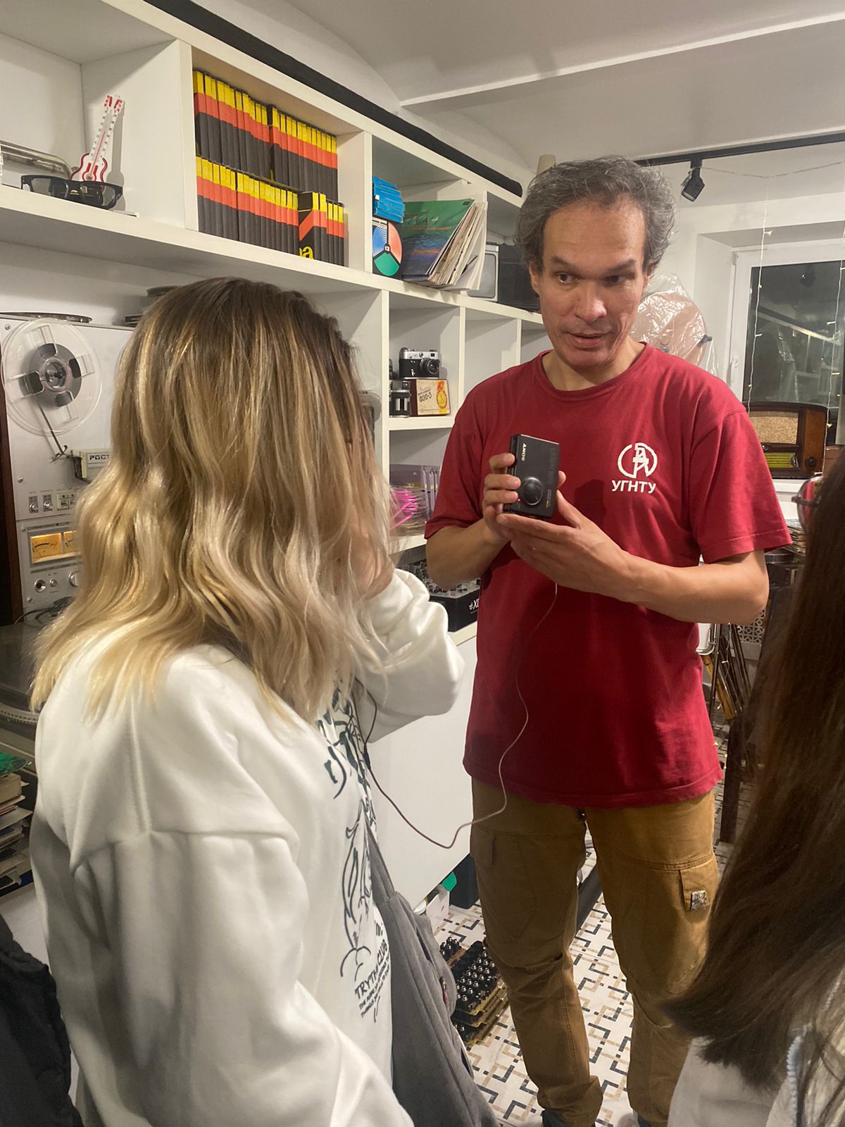 Ребятам провел мини-экскурсию по своему клубу»Ватрушки-Катушки» Илья Тавлияров, известный более старшему поколению как фронтмен группы ВИА « Чаппа».