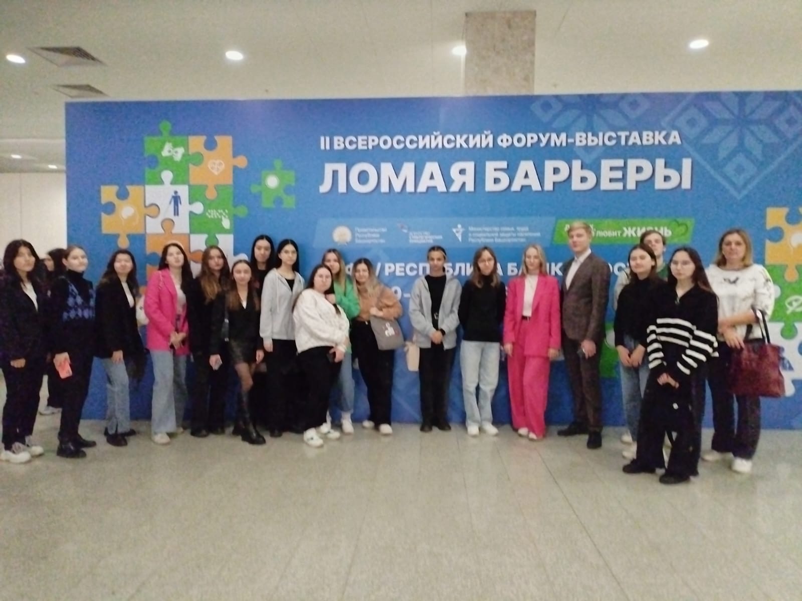20 октября группы 9Т-31-21(24) и 9Т-32-21(24) специальности "Туризм" с преподавателями Коваленко К.В. и Серовой О.В.  приняли участие в круглом столе «Республика Башкортостан как центр доступного туризма», который прошел в рамках II Всероссийского форума-выставки "Ломая барьеры". В выставке приняли участие 40 компаний из 11 регионов страны, которые представили инновационные решения для повышения качества жизни людей с ограниченными возможностями.