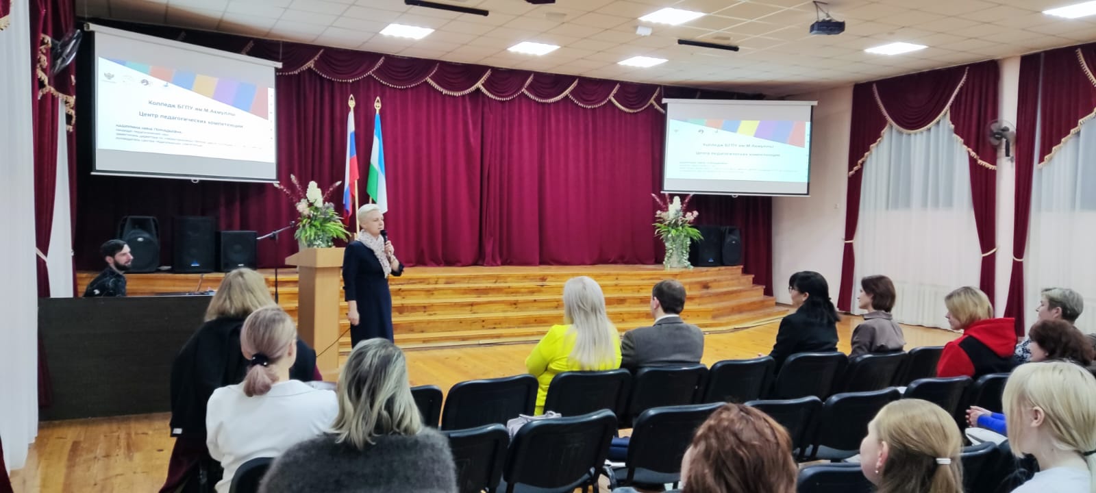 О колледже Акмуллинского университета и проекте «Профессионалитет» рассказала руководитель Центра педагогических компетенций, заместитель директора колледжа Нина Набиулина. Она представила направления обучения и материально-техническую базу колледжа, рассказала о возможностях для самореализации в самых разных направлениях, которые получат все студенты БГПУ имени Акмуллы.