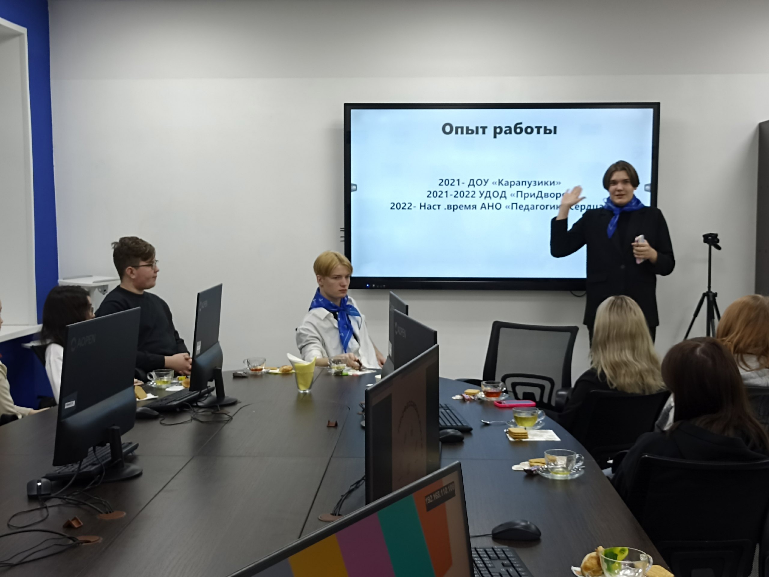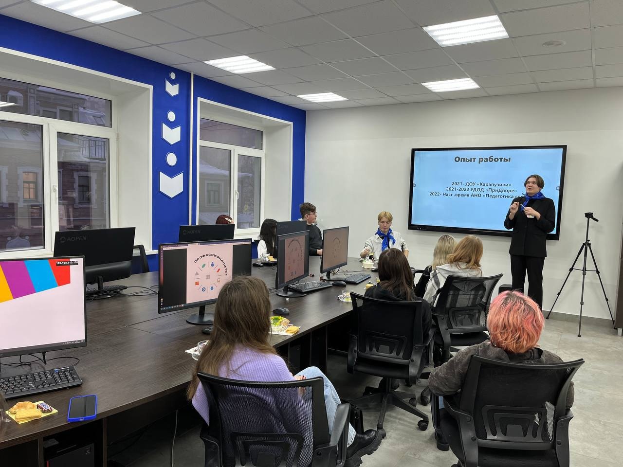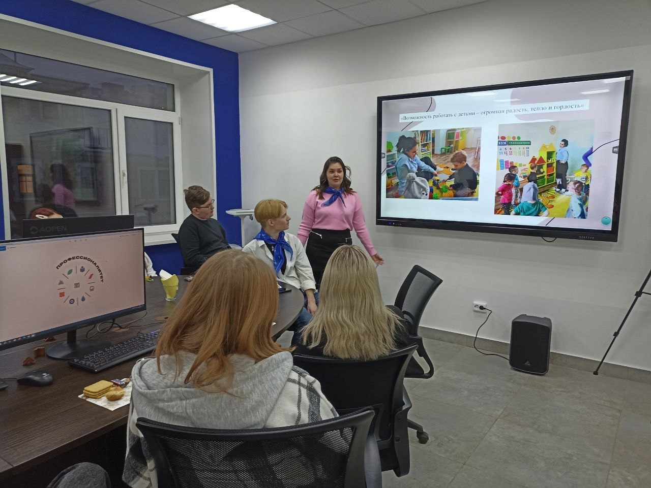 Перед собравшимися выступили руководитель Центра педагогических компетенций Нина Набиулина, куратор движения амбассадоров Тимур Асмондьяров. Они рассказали о ФП «Профессионалитет» и движении амбассадоров.