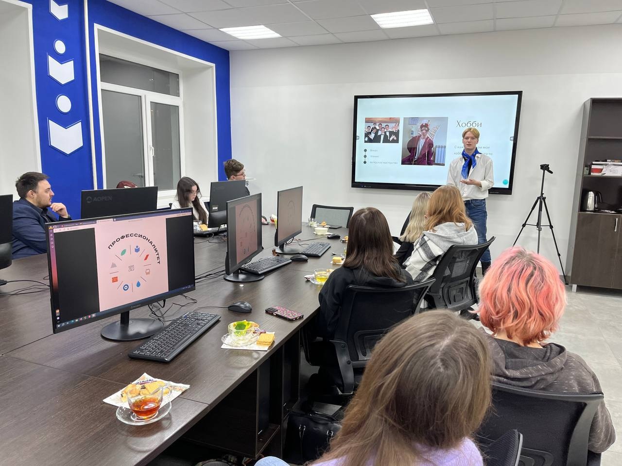 Основной целью встречи было познакомиться поближе с амбассадорами ФП «Профессионалитет». Со старостами встретились амбассадоры (студенты старших курсов) – Семён Хозяинов, Денис Арефьев и Александра Мирошниченко.