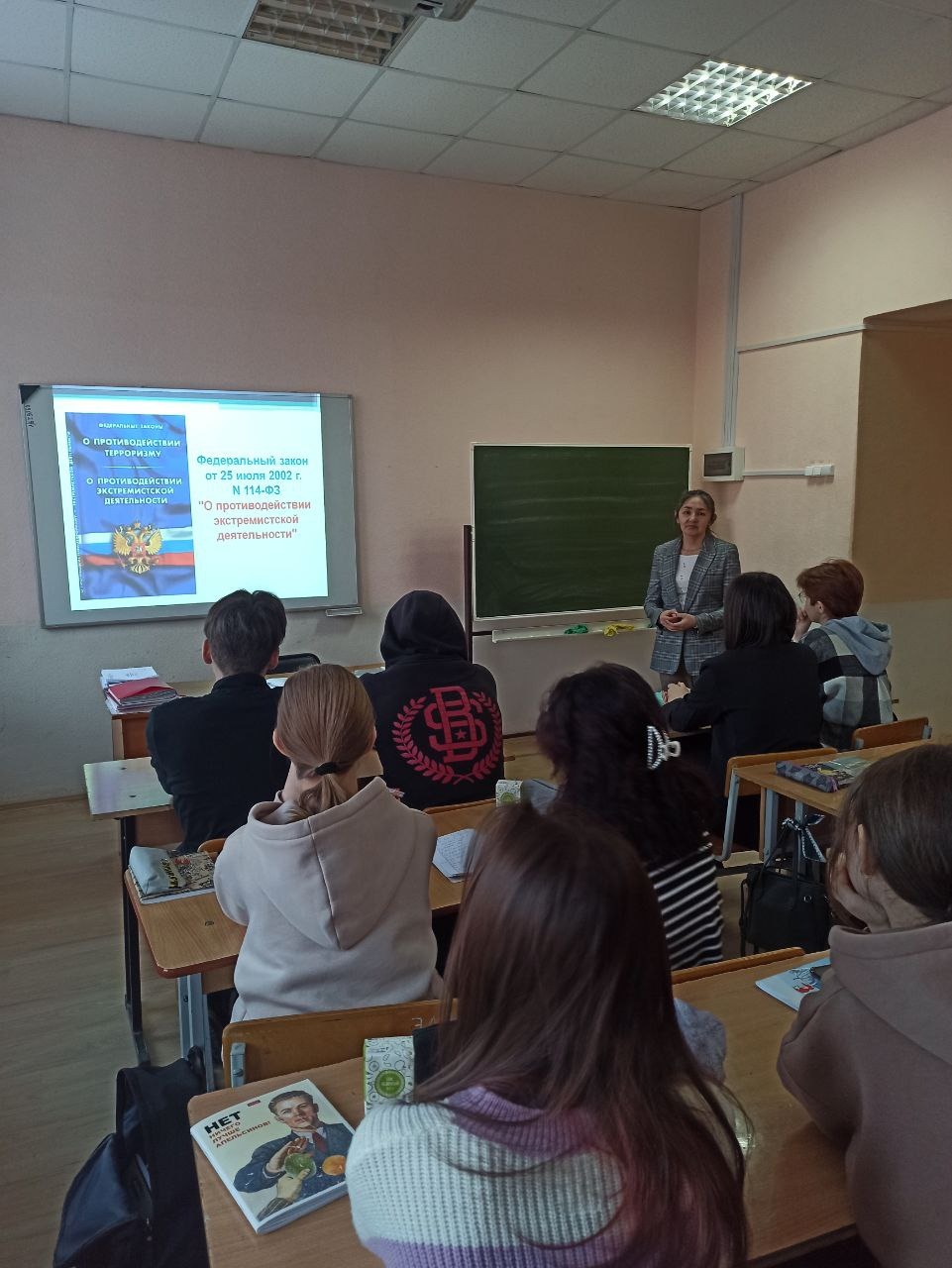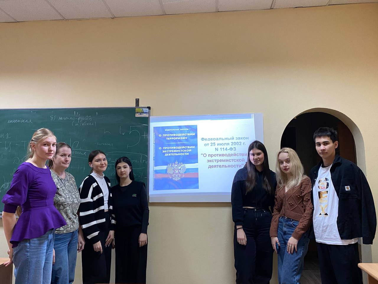 В рамках реализации Плана работы колледжа по противодействию террористическим актам и профилактике экстремизма в студенческой среде, а также согласно Плана мероприятий общевузовской недели противодействия идеологии экстремизма и терроризма с 05.12. - 12.12.2023 г. в колледже БГПУ им.М.Акмуллы продолжаются кураторские часы и мероприятия по данной теме. Кураторы групп познакомили ребят с  Федеральным законом от 25.07.2002 №114-ФЗ «О противодействии экстремистской деятельности», и Федеральным законом от 03.05.2011 №96-ФЗ «О противодействии терроризму». Обратили внимание ребят меры уголовной ответственности за совершение преступлений экстремистского и террористического характера.                                                                                 7,8,9 декабря кураторские часы были проведены в группах: