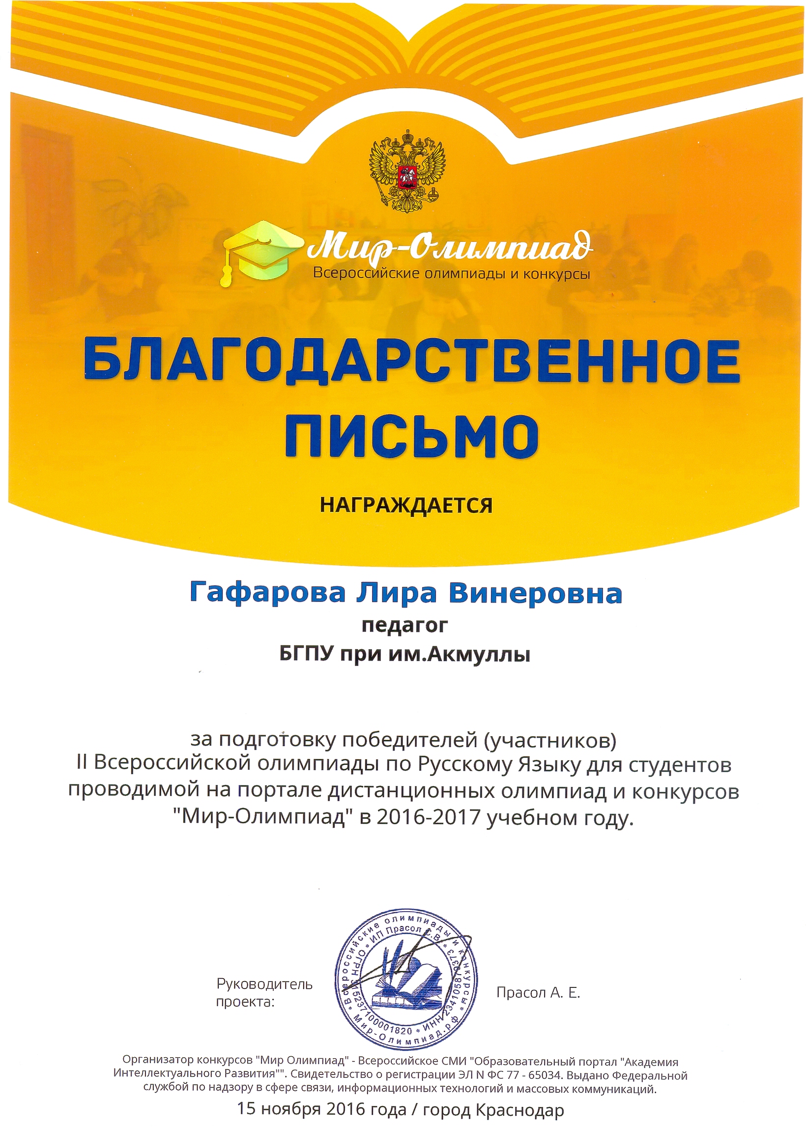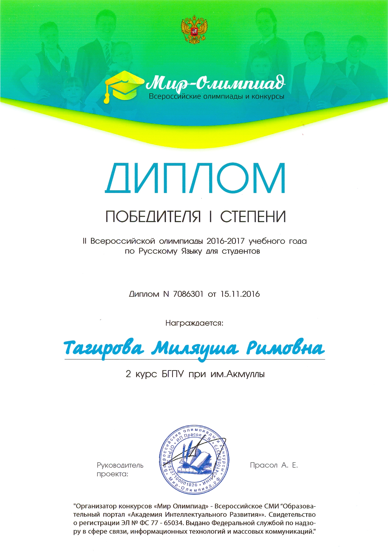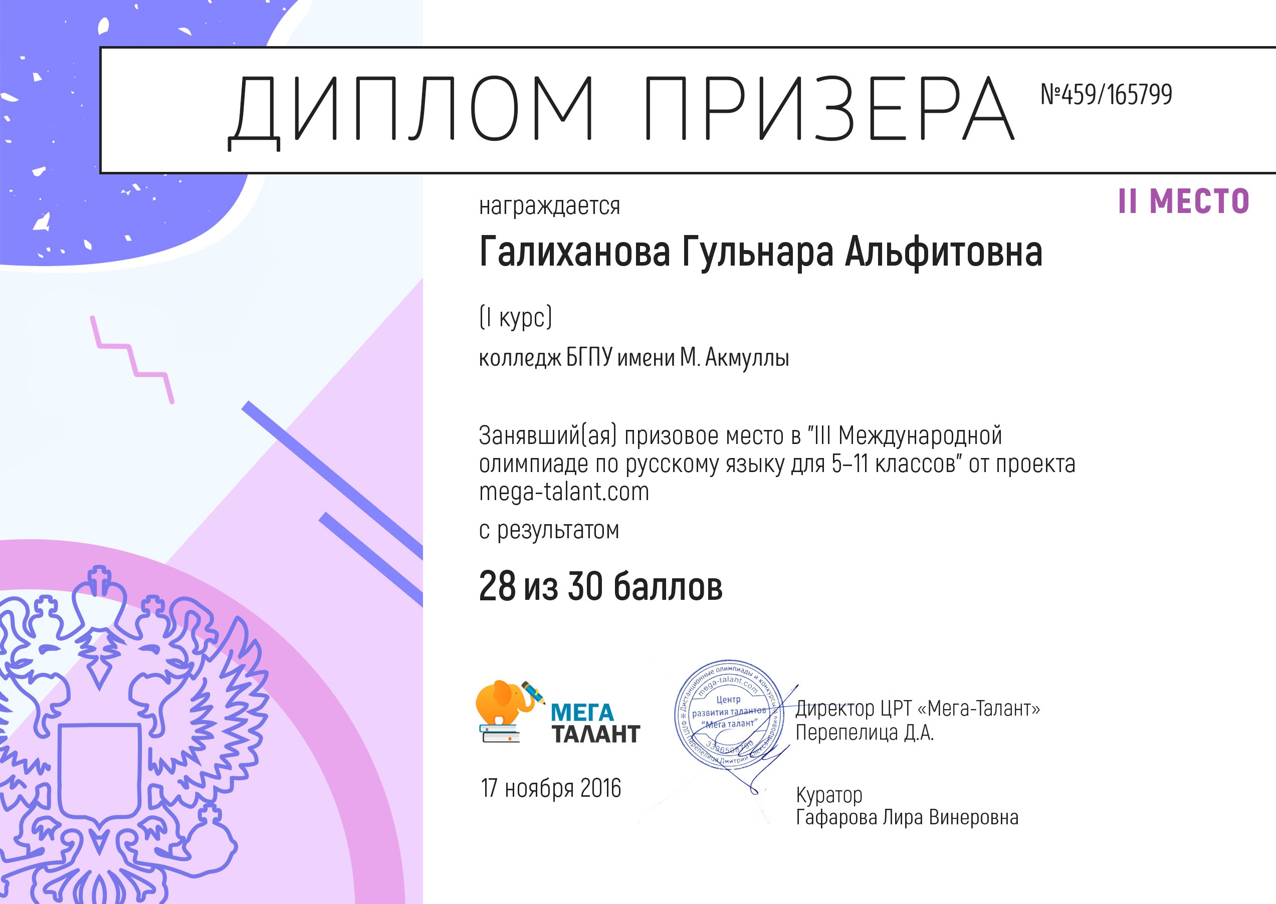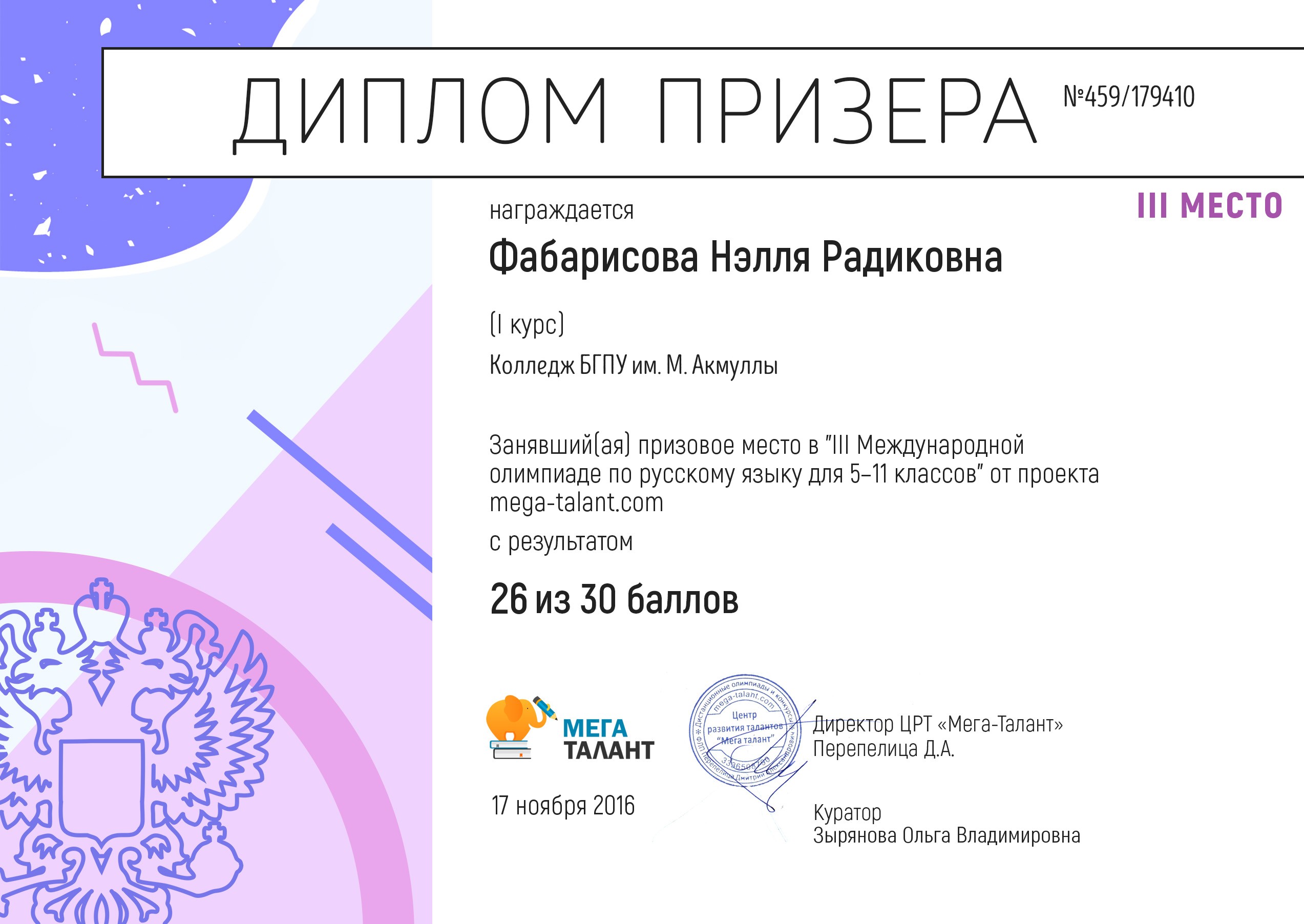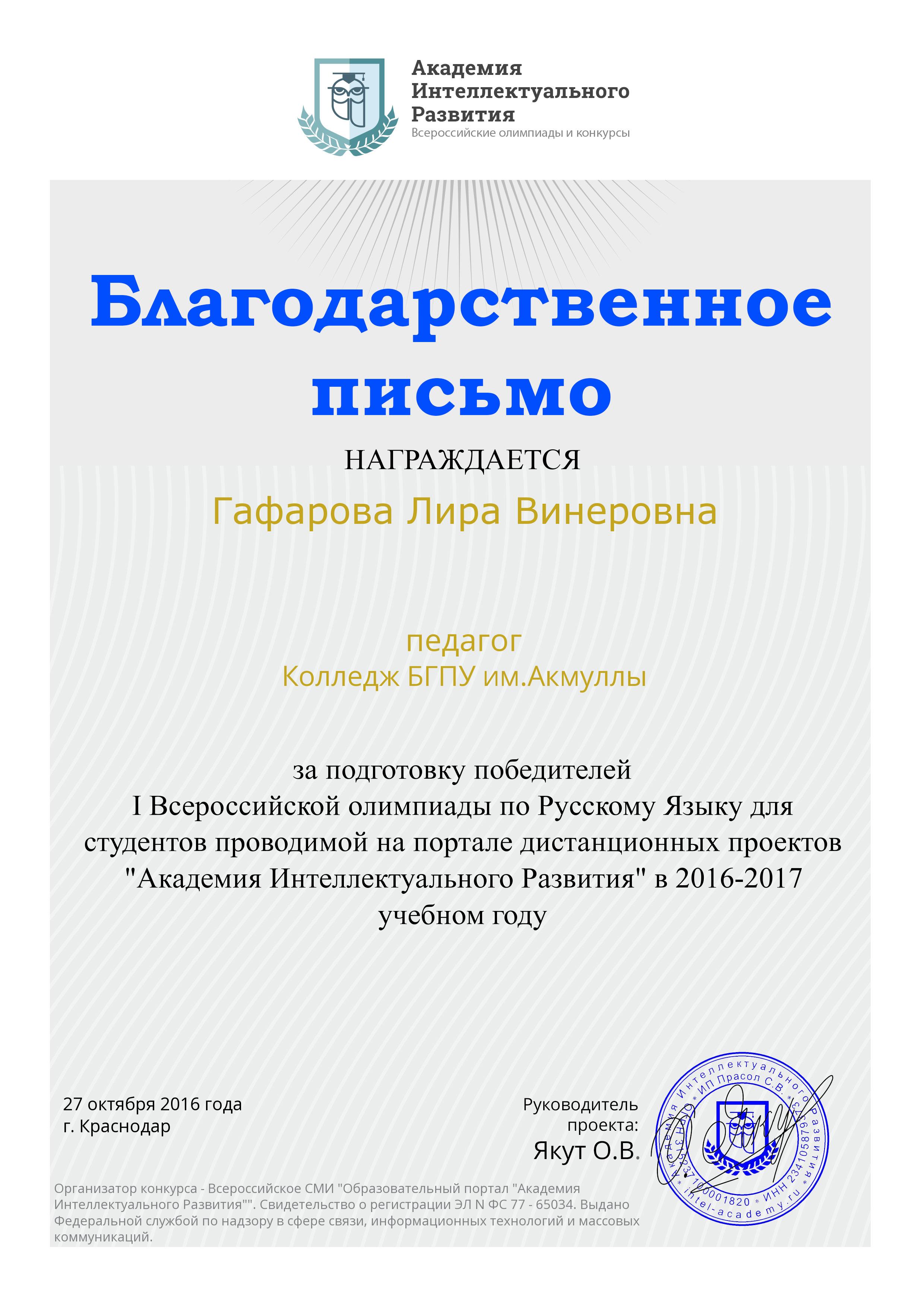 Поздравляем студентов Колледжа БГПУ им. М.Акмуллы (руководитель Л.В.Гафарова), занявших призовые места в олимпиадах по русскому языку и литературе!