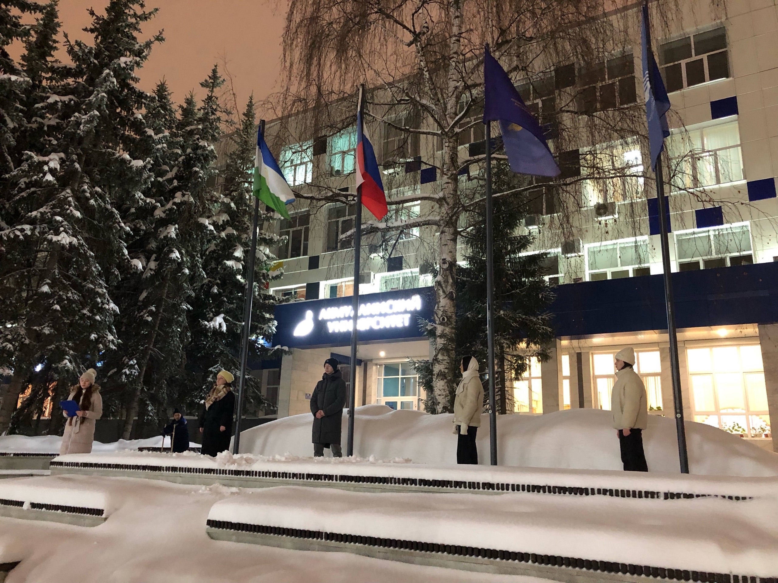 5 февраля перед первым корпусом БГПУ имени Акмуллы состоялась еженедельная торжественная церемония поднятия Государственного флага Российской Федерации, флага Республики Башкортостан, Министерства просвещения Российской Федерации, Акмуллинского университета.