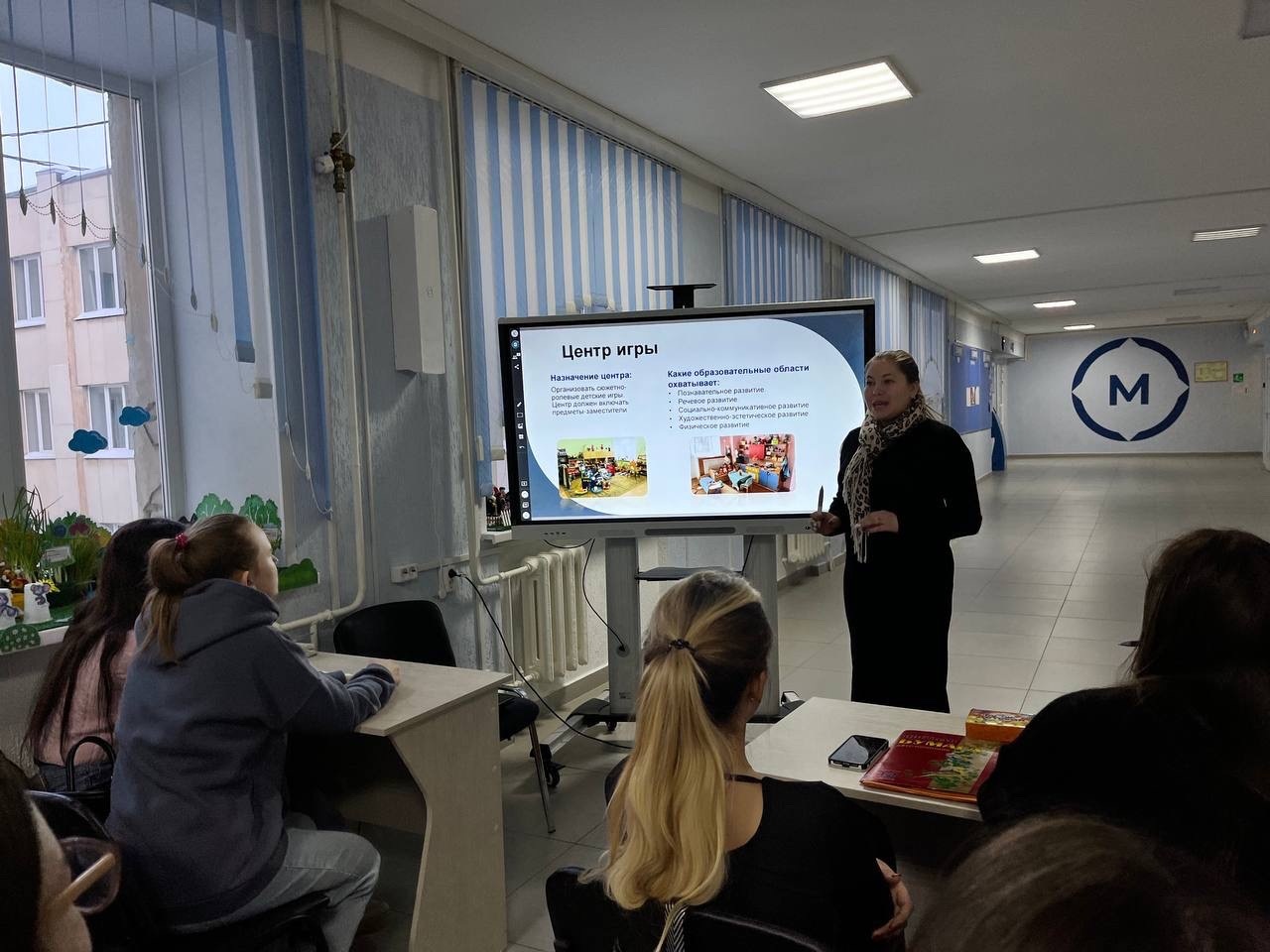 Студентам представилась возможность разработать проект элемента предметной развивающей среды в дошкольной образовательной организации. Они продемонстрировали на практике центр, творчества, центр математики и центр правил дорожного движения.