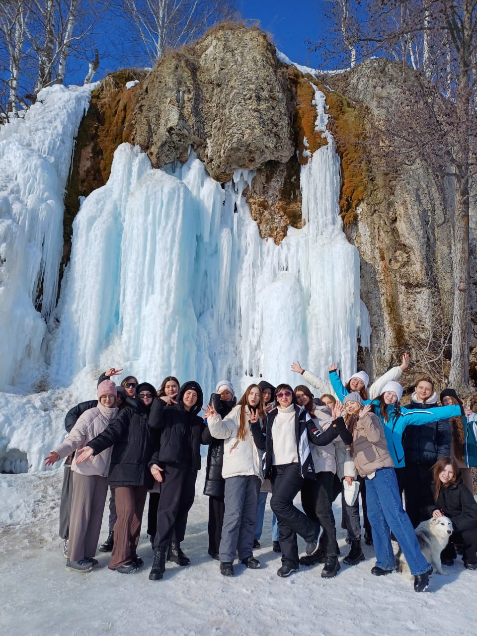 В рамках проведения недели цикловой комиссии специальности "Туризм" 02.03.2024 студенты группы 9Т-21-22(25) с куратором Липатовой Д.И. совершили экскурсию в Аскинскую ледяную пещеру и на Асинский (Абзановский) водопад. Аскинская пещера представляет собой интересный туристический объект, так как на ее входе расположен реликтовый ледник, сохраняющийся весь год. Сама пещера невероятно красива ледяными сталактитами и сталагмитами напоминающими причудливых животных! Абзановский водопад это один из самых красивых и известных водопадов в Башкортостане, особенно зимой. Летом этот водопад называют "Мужскими слезами" так как представляет собой небольшую струю воды.