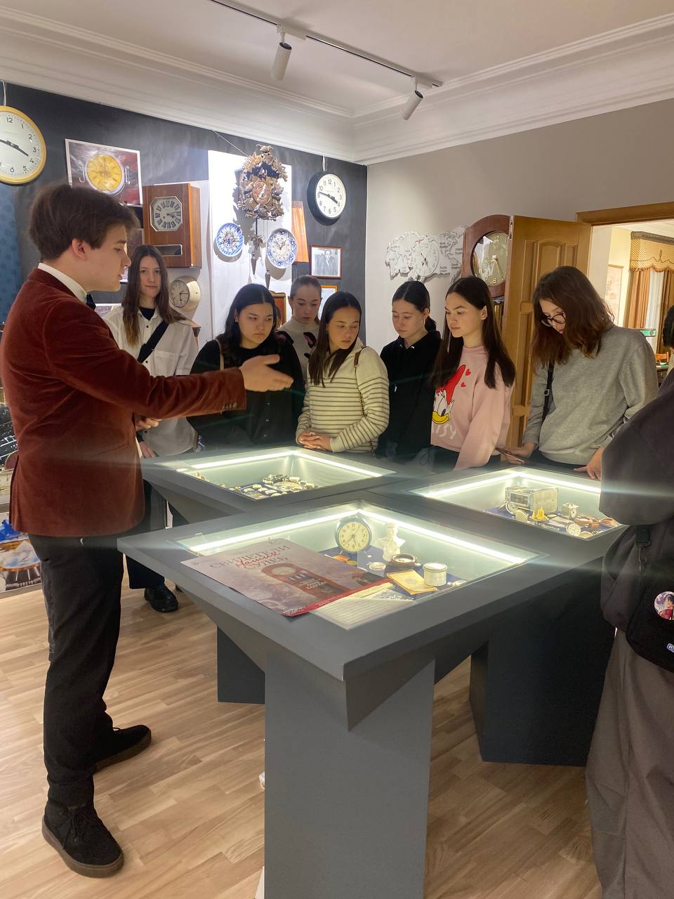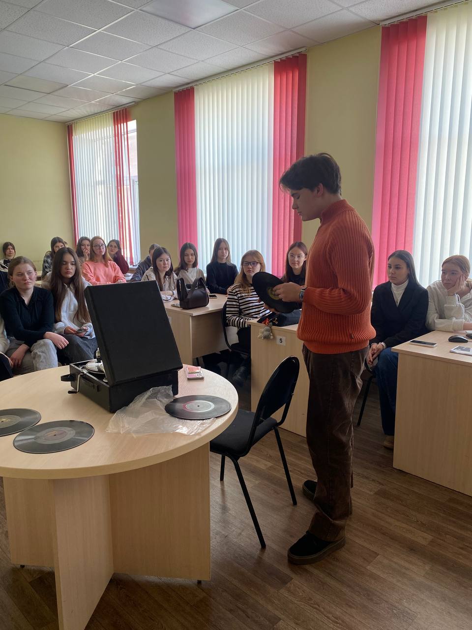 В рамках декадника специальности «Туризм» провели встречу с коллекционером и вундеркиндом Аланом Хадеевым, в форме музыкальной гостиной, а точнее, Алан провел прослушивание  уникальных пластинок на своих ретро патефонах, возраст одного экспоната составляет 100 лет.  Хадеев известен в нашем городе как владелец огромной коллекции часов (600 предметов), о которой он нам рассказал во время посещения Мемориального музея Худайбердина.