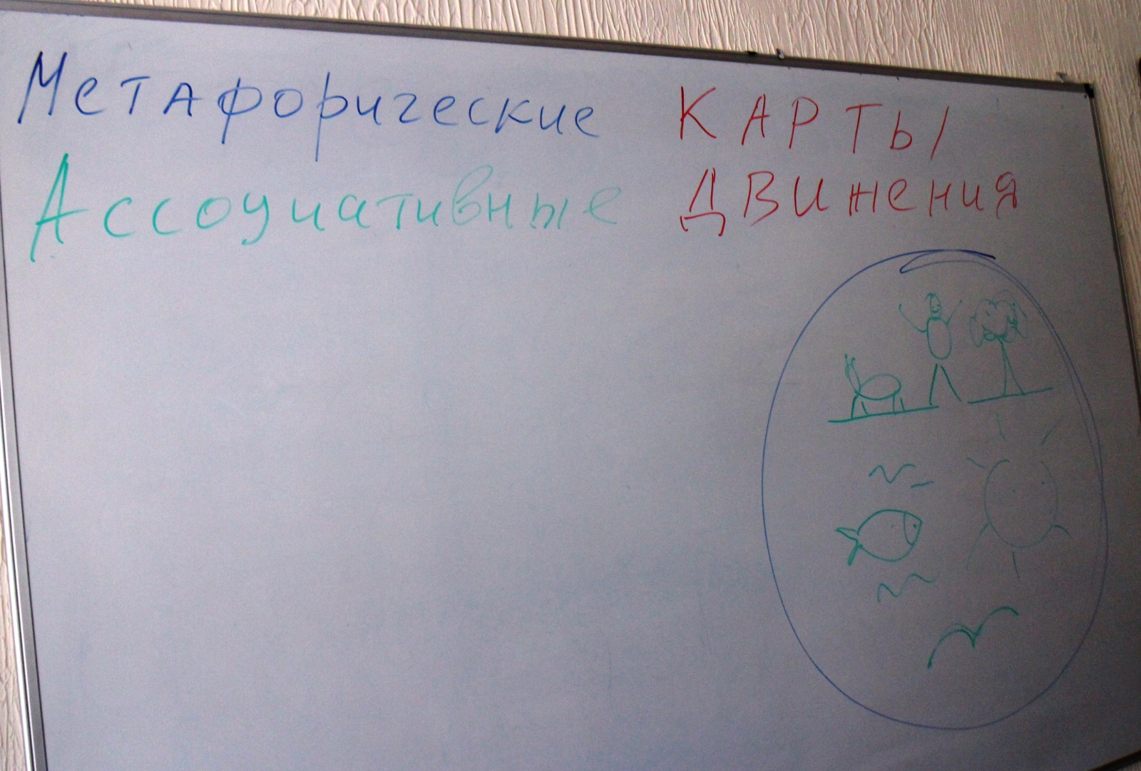 Далее каждый участник воспроизводил движением то, что нарисовано на карте, а остальные участники повторяли движения и угадывали. Также по ходу занятия задавались вопросы: а с чем ассоциируется данные образы и данные движения? Символами и метафорами чего они являются? Какой ресурс мы в них видим? Были получены очень интересные ответы.