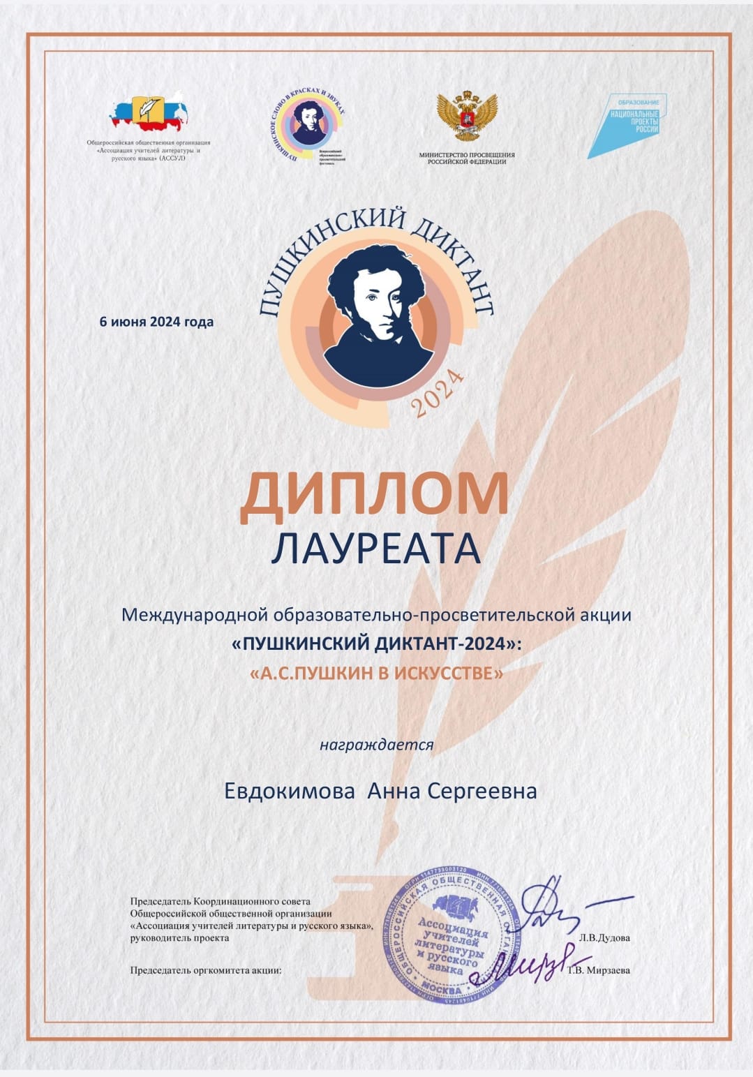 Были объявлены итоги Международной просветительской акции «Пушкинский диктант – 2024». Организатором данного мероприятия является Общероссийская общественная организация «Ассоциация учителей литературы и русского языка» (АССУЛ). В этом году «Пушкинский диктант» вошел в серию мероприятий Всероссийского образовательно-просветительского фестиваля «Пушкинское слово в красках и звуках» и проводился при поддержке Министерства просвещения Российской Федерации в рамках Национального проекта «Образование», приуроченного к празднованию 225-летия со дня рождения А.С. Пушкина. Студенты 1 курса специальностей «Библиотековедение», «Туризм и гостеприимство» Колледжа БГПУ им. М.Акмуллы под руководством преподавателя Гафаровой Л.В. приняли активное участие и показали следующие результаты: