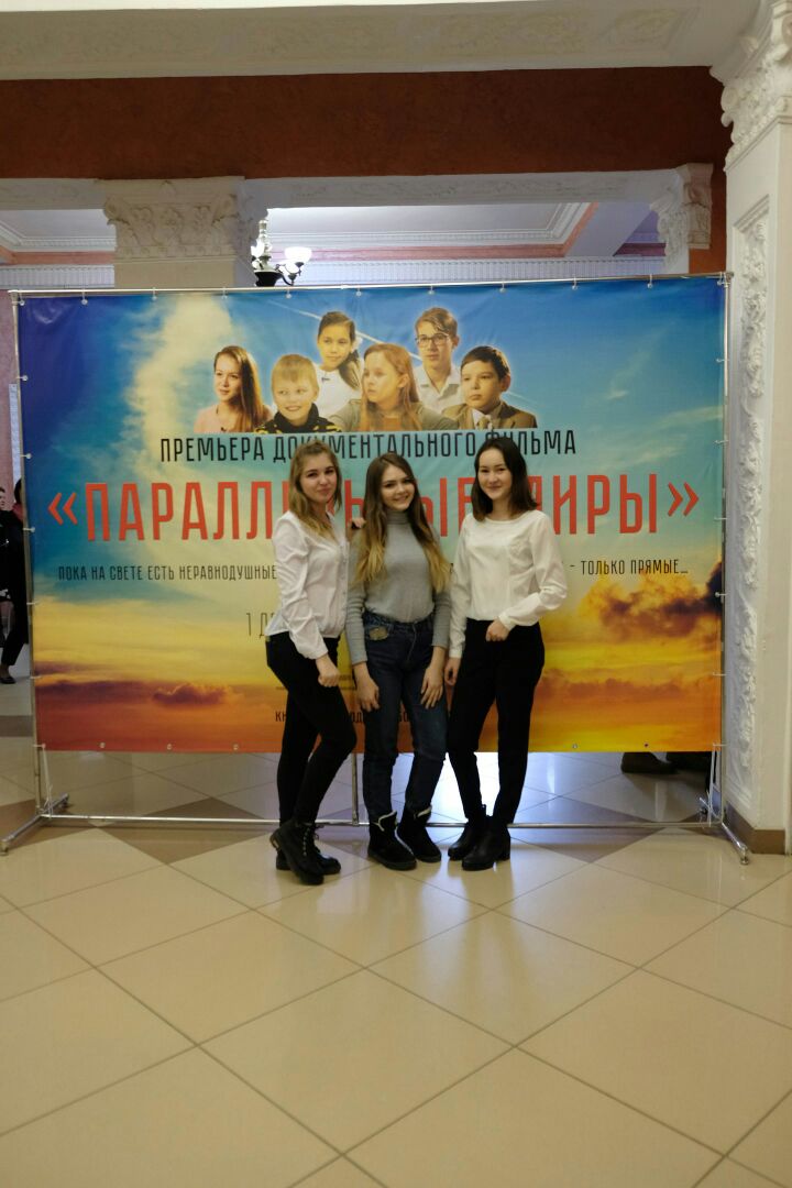 1 декабря 2017 года студенты Колледжа БГПУ им. М.Акмуллы вместе с преподавателем А.А. Бускуновой побывали в кинотеатре «Родина» на премьере документального фильма "Параллельные миры", приуроченной к Международному дню инвалидов. "Параллельные миры" – это фильм о взаимоотношении детей с ограниченными возможностями здоровья и здоровых детей, который не оставил равнодушным ни одного зрителя в зале во время просмотра. Фильм снят благотворительным фондом «Наше будущее». На экране дети с ограниченными возможностями рассуждают о том, почему они растут, учатся и развиваются в изоляции. Как можно изменить эту ситуацию, и нужно ли это делать? Хотят ли на самом деле дети учиться вместе? Каким им видится идеальный мир, о чем они мечтают и что для них – счастье? Нужна ли инклюзия с точки зрения детей? И как донести до родителей и преподавателей важность инклюзии в их жизни? Ответы на эти вопросы вместе с юными героями ищут авторы фильма и предлагают зрителям задуматься над проблемами, поднятыми в картине.