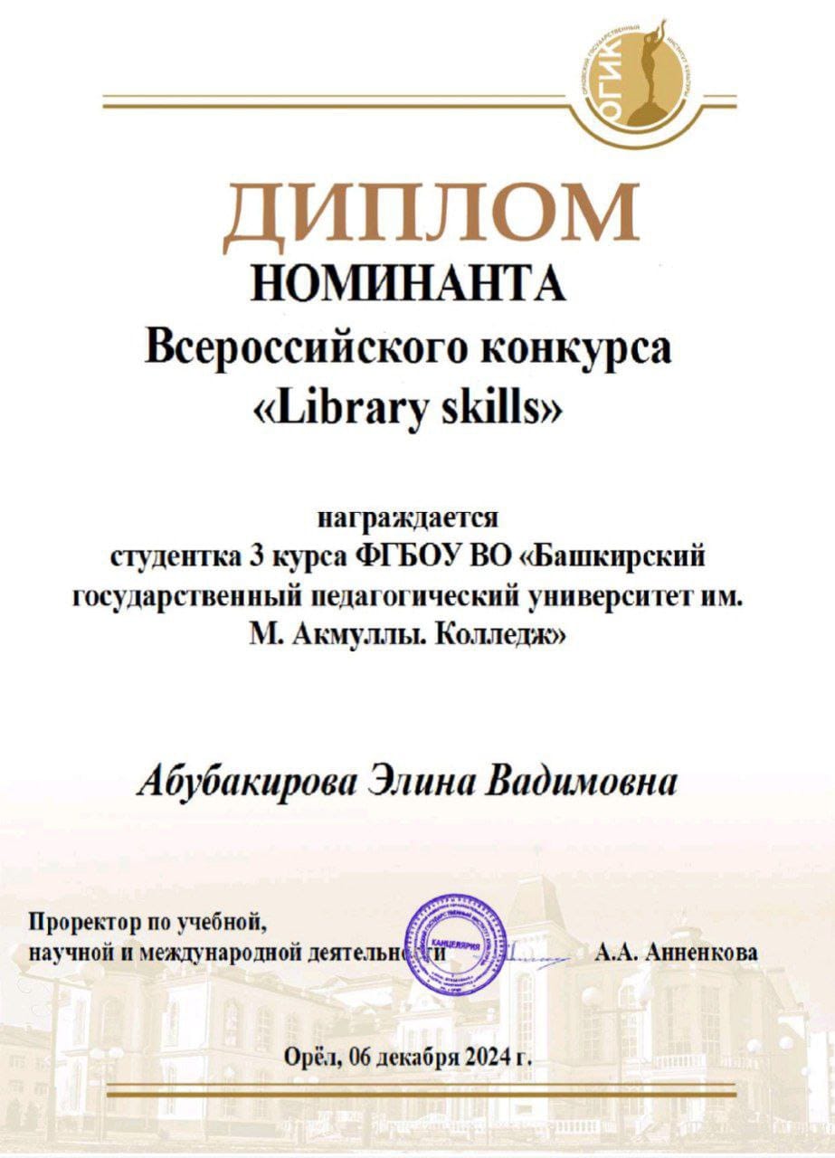 С 16 ноября по 03 декабря 2024 года в Орловском государственном институте культуры проходил конкурс        "Library skills" (заочный).