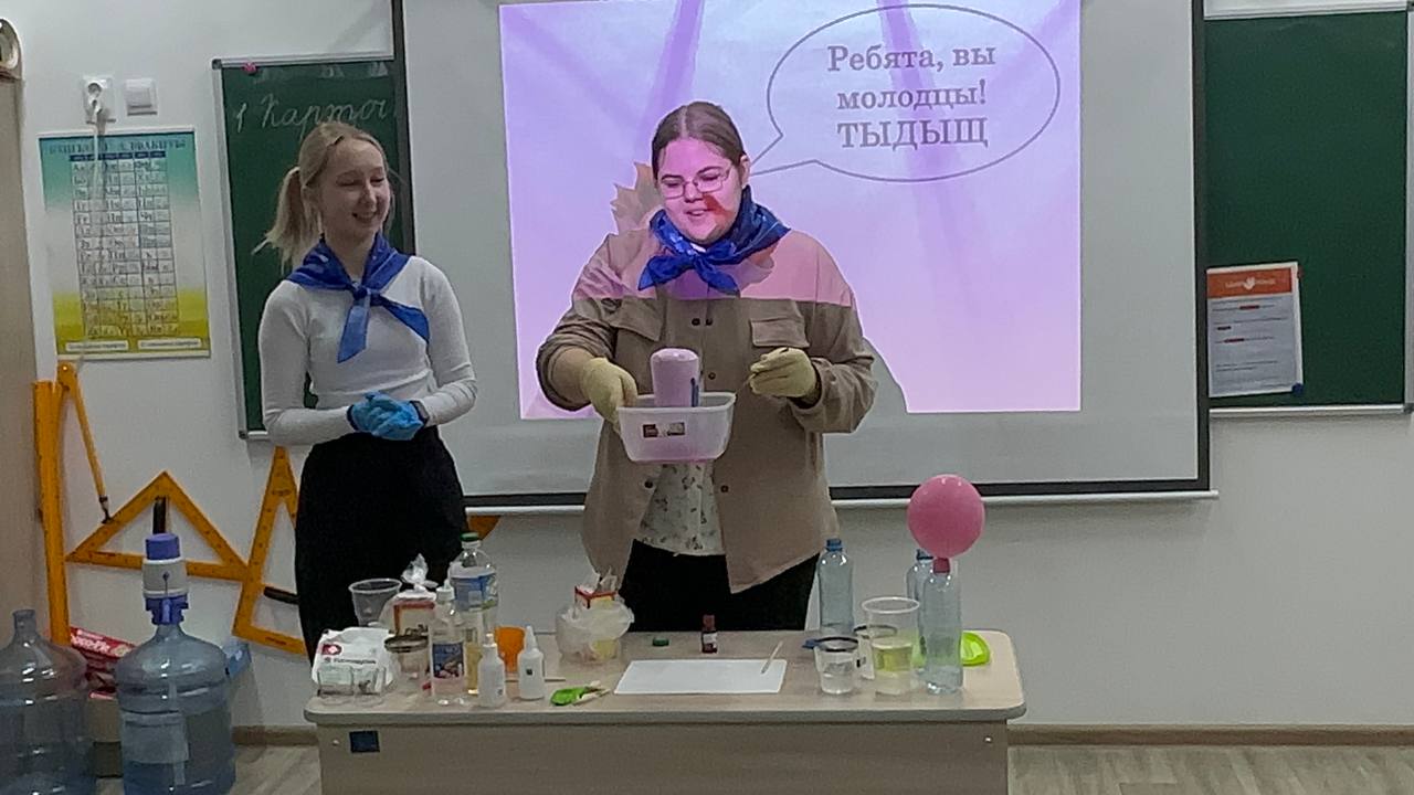 В рамках стажировки преподаватель Филатова Екатерина Александровна совместно со студентами провела экспериментальный урок в МАОУ «Башкирская гимназия № 158 им. Мустая Карима» во втором классе на тему «Химия и эксперименты, связанные с ней».