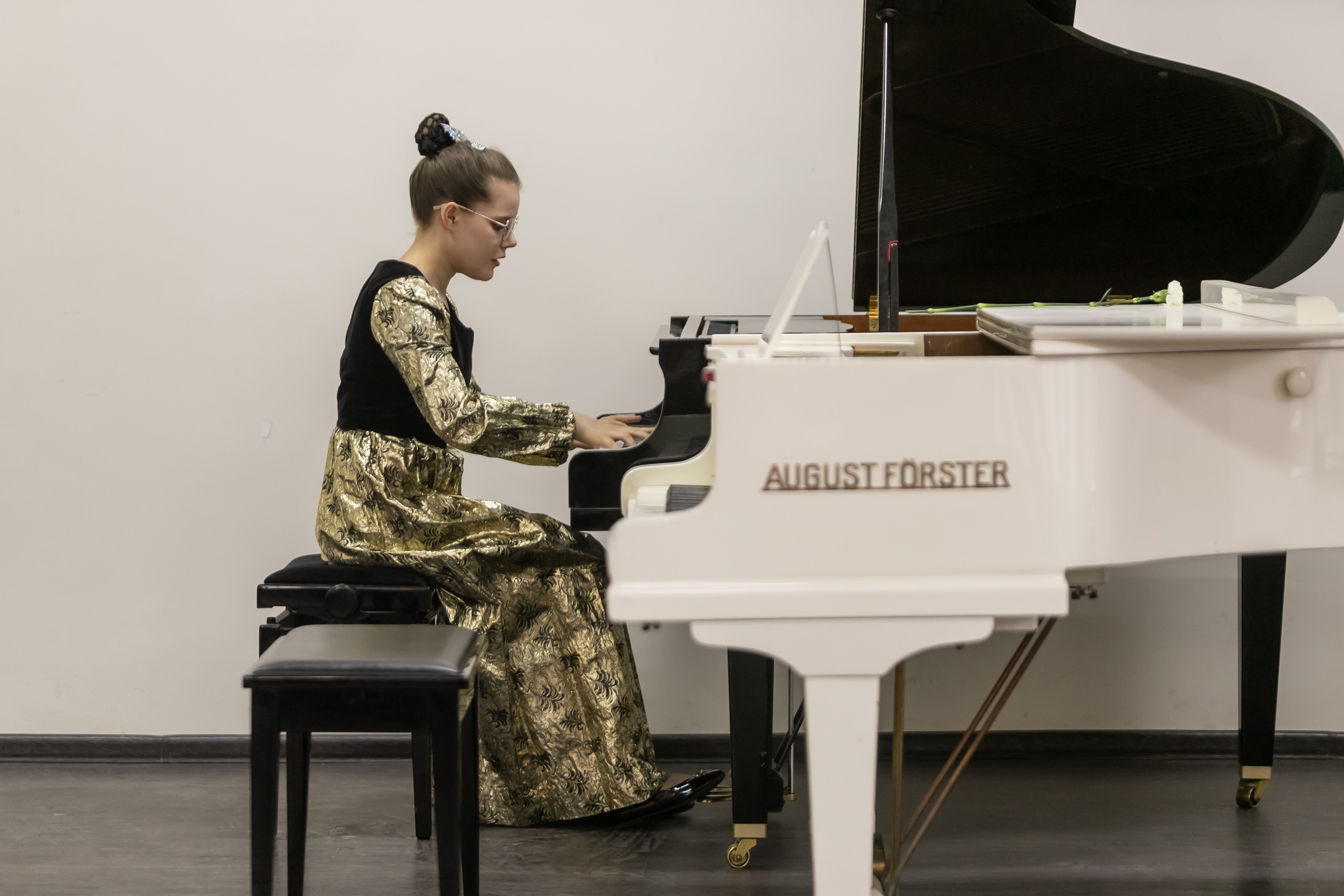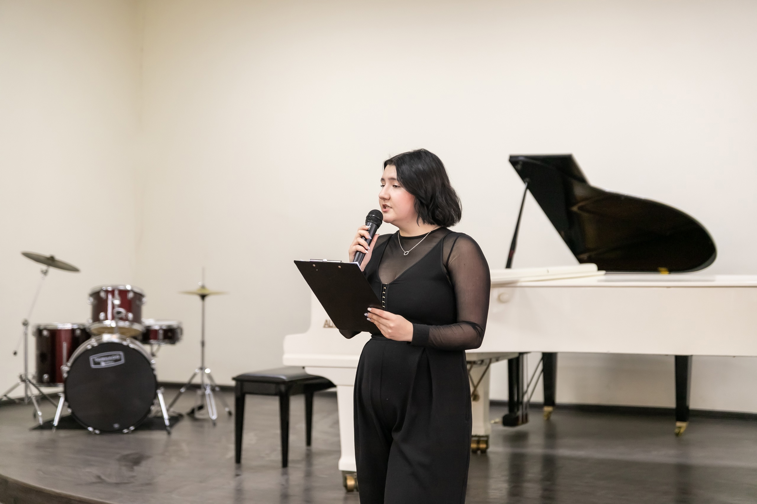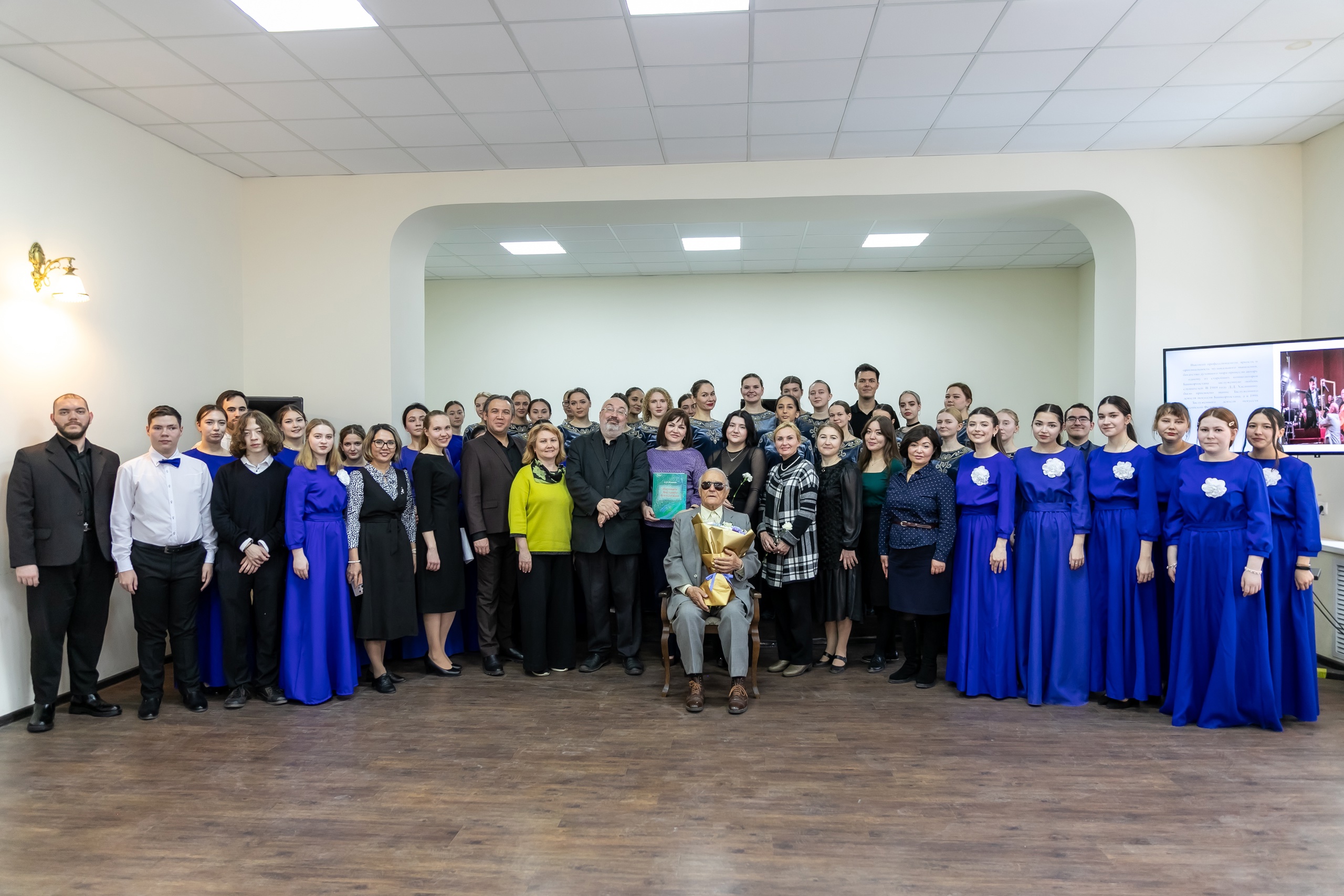 «Мы бережно храним сборник детских песен, который Вы когда-то подарили колледжу. Вы, наверное, знаете, что сейчас наш колледж – единственный в республике, который готовит учителей музыки. И те традиции, которые были заложены еще Вашими преподавателями, сейчас продолжаются и передаются из поколения в поколение. Мы желаем Вам от всего нашего коллектива, чтобы Вы как можно больше были с нами, радовали нас своей музыкой, своим творчеством», – сказала Анна Таболина. Она подарила Данилу Хасаншину на память пейзаж, написанный студентами колледжа.