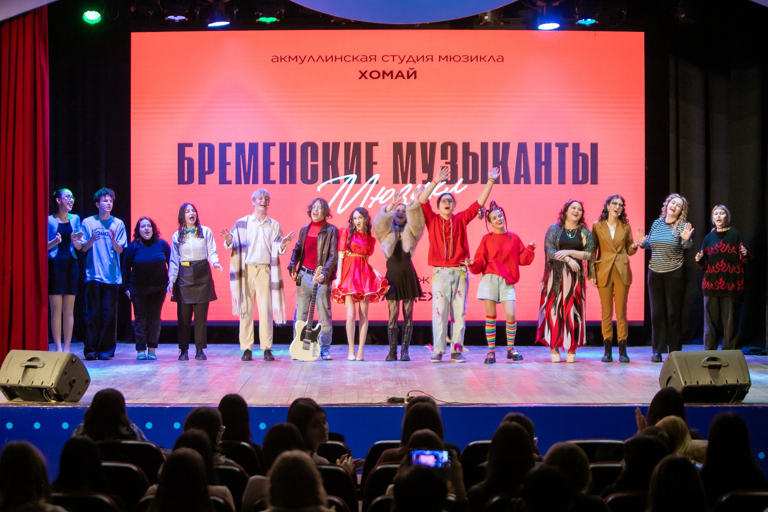 Акмуллинская студия мюзикла «Хомай» представила спектакль «Бременские музыканты». Представление для студентов первого курса колледжа прошло в концертном зале БГПУ им. М. Акмуллы. Студенты приобрели билеты на спектакль по «Пушкинской карте».