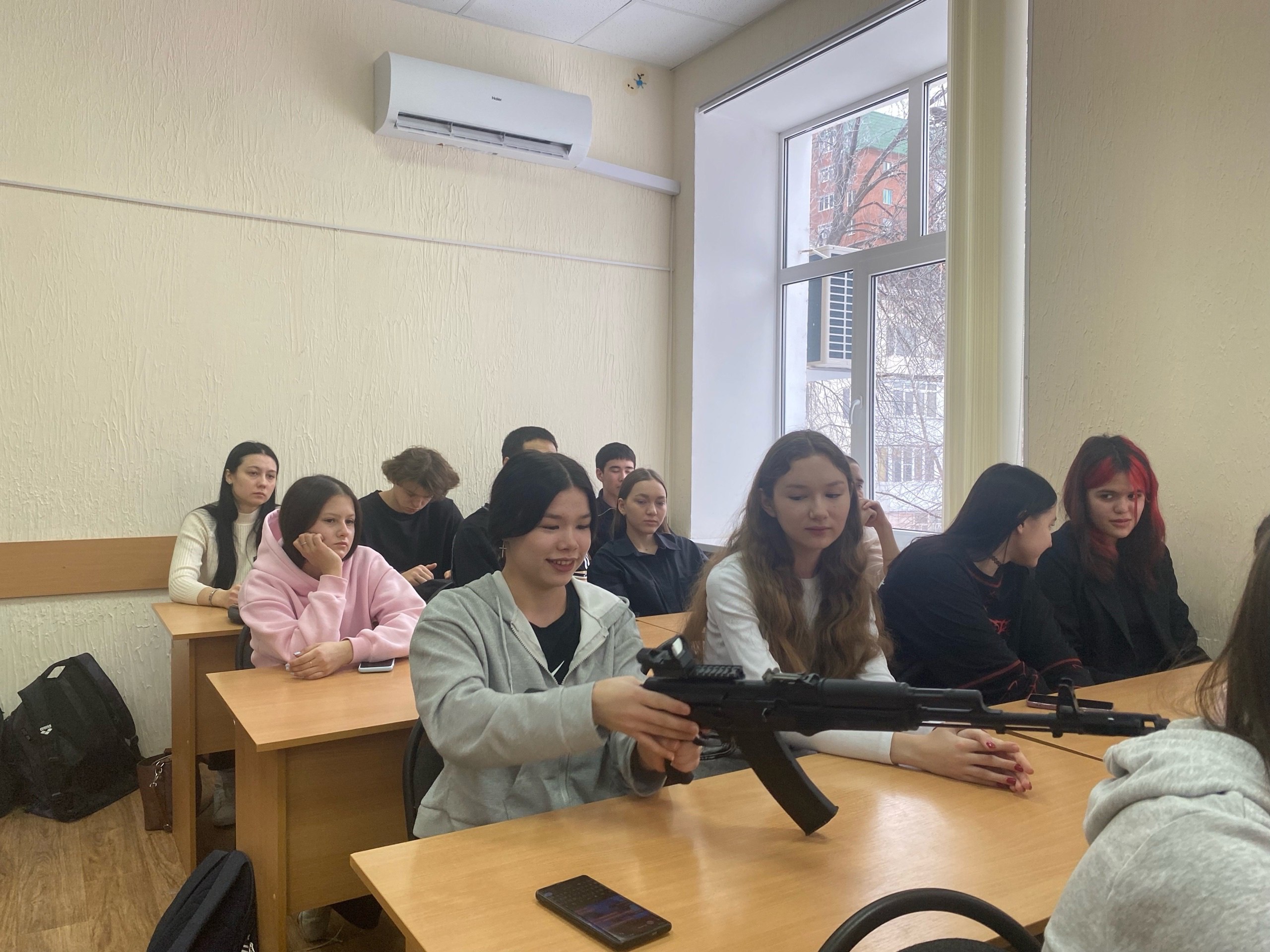 Встреча прошла в живой и теплой атмосфере, студенты заинтересовались видами стрелкового оружия и активно задавали вопросы гостю.