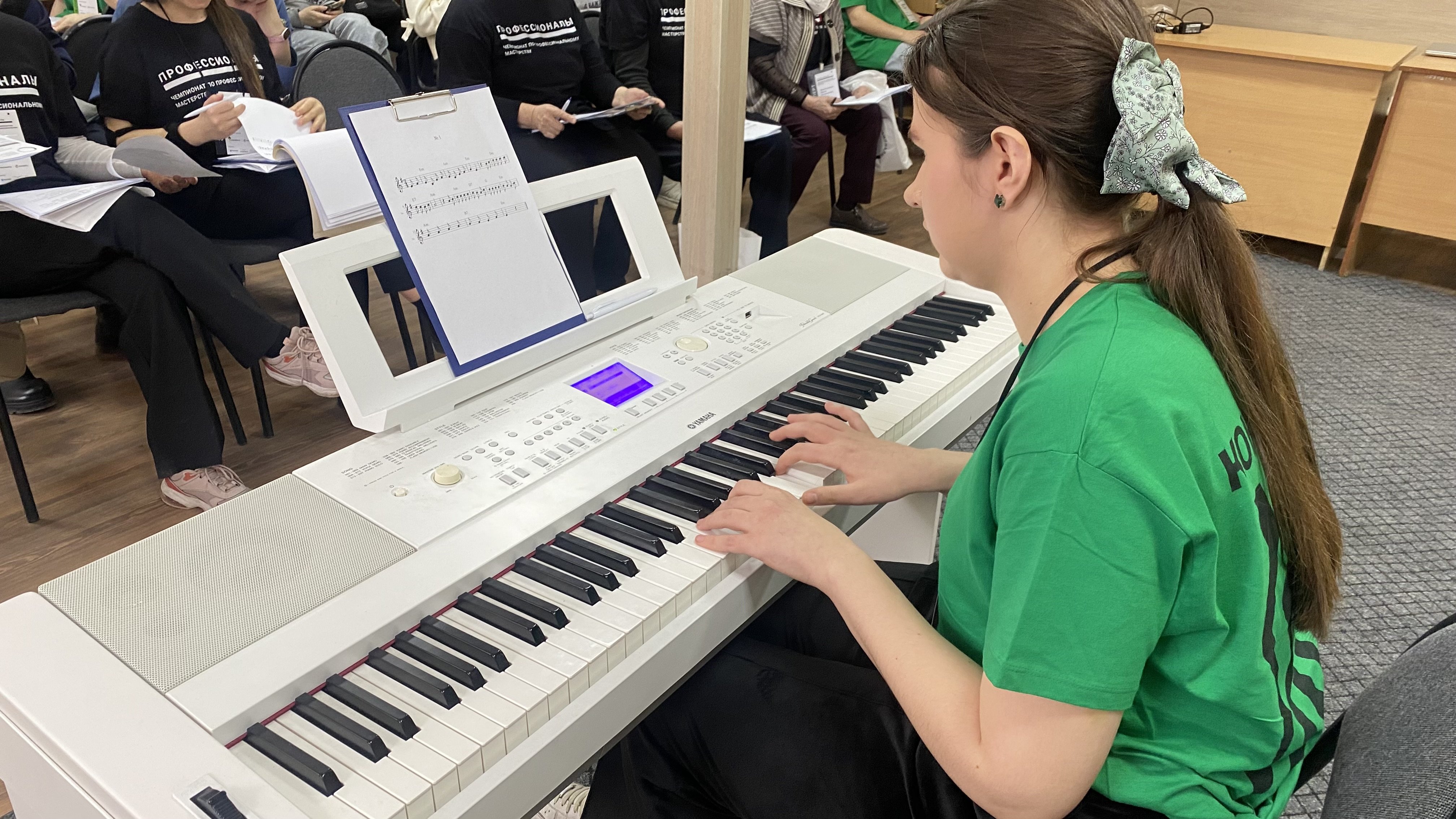 12 февраля, первый конкурсный день Регионального этапа Чемпионата "Профессионалы " по компетенции "Преподавание музыки в школе " начался для конкурсантов с творческого баттла. Участники столкнулись с пятью разнообразными заданиями. Началось испытание с самопрезентации, где каждый смог показать  свои таланты, затем последовали музыкальная викторина, исполнение народной  песни  a capella, игра на фортепиано по цифровке. Завершился этот модуль исполнением детской эстрадной  песни.
