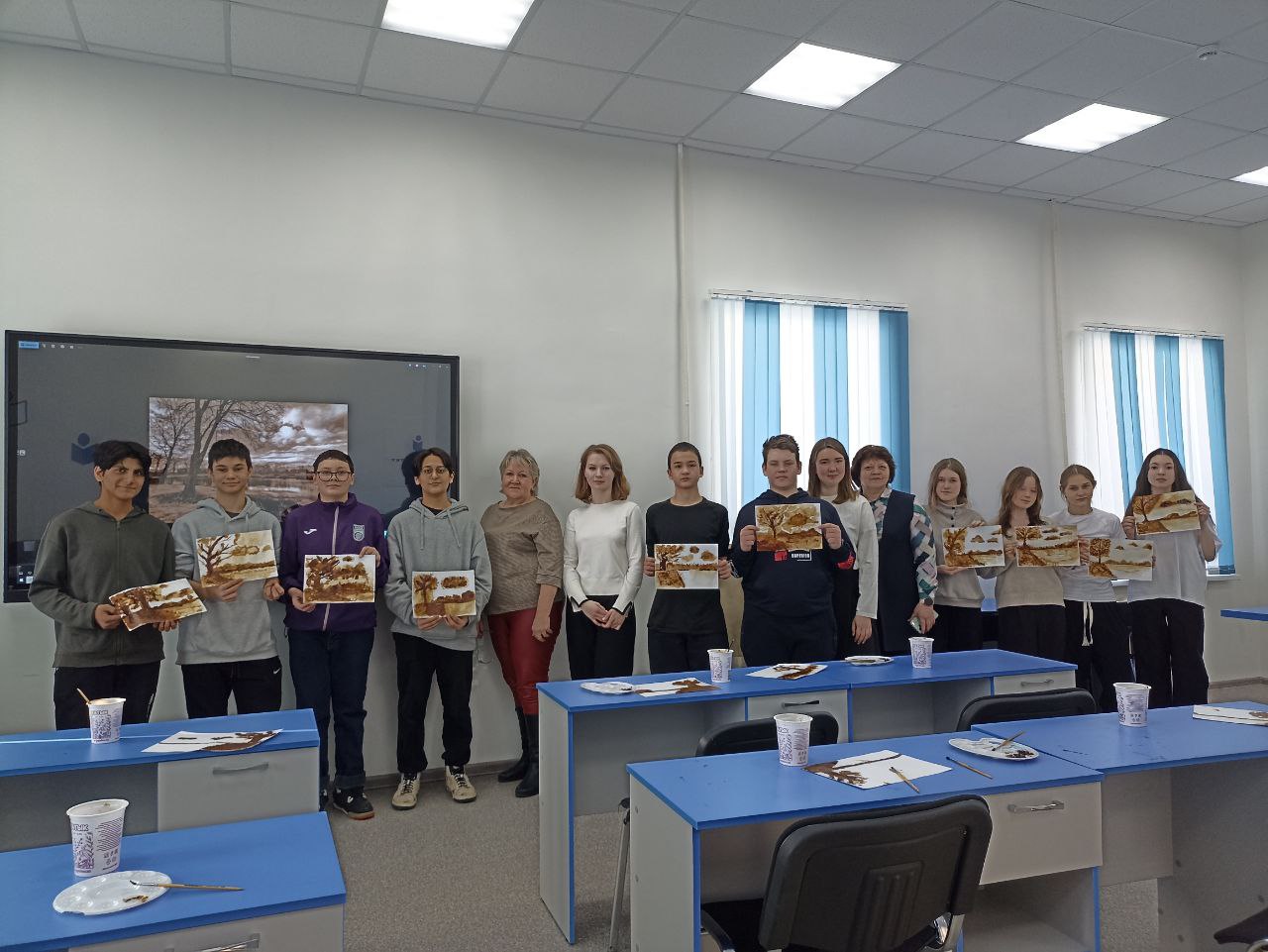 В рамках Профессионального навигатора в Центре педагогических компетенций студенты 4 курса с преподавателем Козловой Галиной Владимировной специальности Изобразительное искусство и черчение провели мастер-класс «Кофейная монополия» для учащихся 8-х классов Школы №100 им.А.А. Абдуллина.