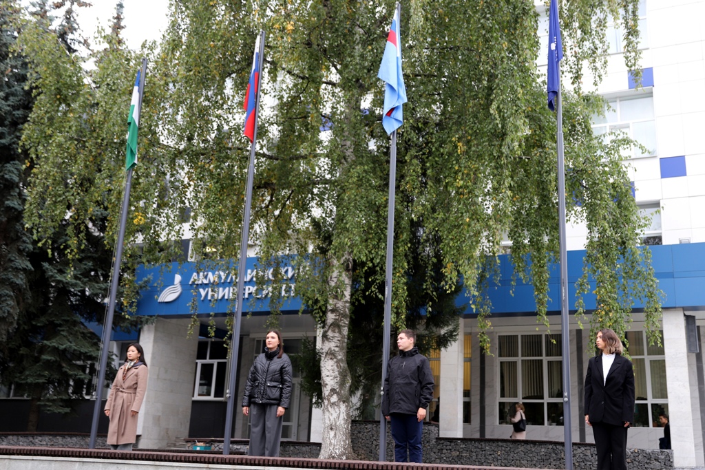 15 сентября в Башкирском государственном педагогическом университете им. М. Акмуллы состоялась традиционная еженедельная церемония поднятия государственных флагов Российской Федерации, Республики Башкортостан, флагов Министерства просвещения Российской Федерации и Акмуллинского университета. Участие в ней приняли студенты и преподаватели  колледжа БГПУ им. М. Акмуллы.