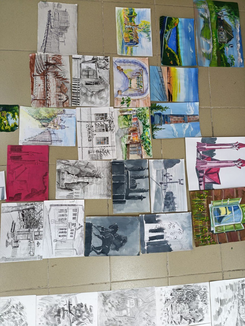 Этот творческий процесс позволил создать графические зарисовки, наброски, этюды городских мотивов старой Уфы, новостроек, парков, скверов с натуры. Погода порадовала солнечными днями и у студентов третьего курса получились замечательные работы.