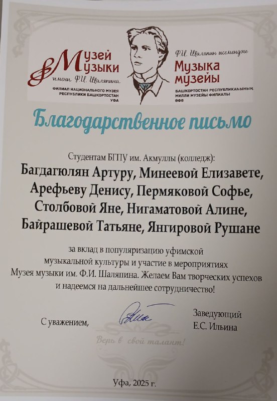 Праздник музыки: студенты Акмуллинского колледжа очаровали публику в Музее музыки им. Ф. И. Шаляпина