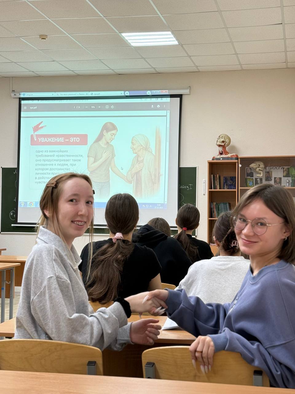 В рамках общероссийского проекта "Разговоры о важном" в Акмуллинском колледже прошли классные часы, посвященные одной из фундаментальных ценностей – уважению. Тема "Что такое уважение?" вызвала живой интерес и активное участие студентов в дискуссии. Ребята не только размышляли над значением уважения в повседневной жизни, но и анализировали его роль в формировании гармоничных межличностных отношений и развитии здорового общества.