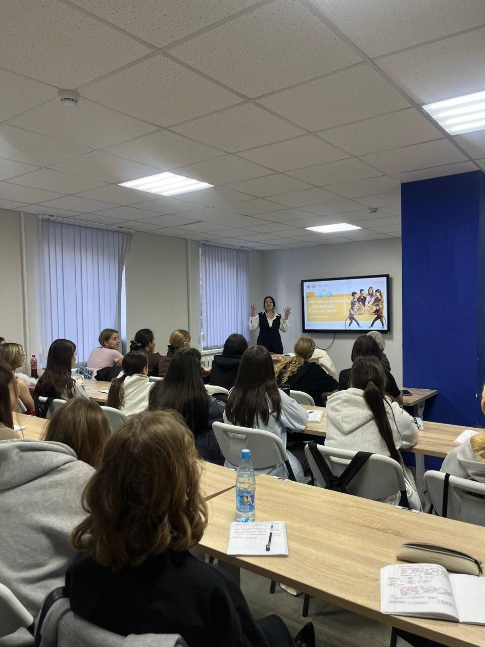 В формате эвристической беседы педагоги и студенты вместе исследовали природу конфликтов: их признаки, виды. Особый акцент был сделан на важной идее: конфликт — это не всегда негатив, а при грамотном подходе он может стать толчком для развития и укрепления отношений.