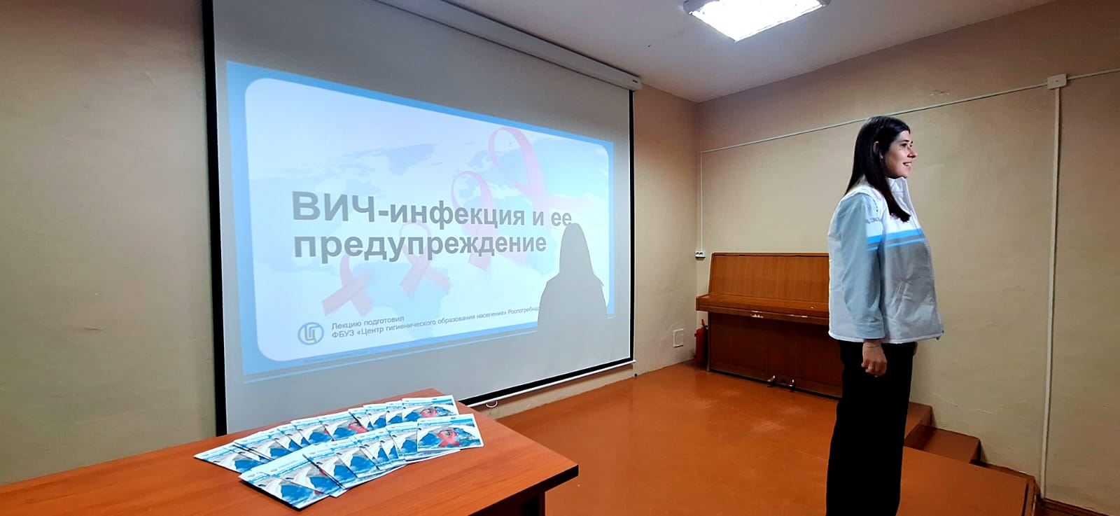Особый интерес у студентов вызвала информация о правде и распространенных заблуждениях, касающихся путей заражения ВИЧ-инфекцией. Алиса Артуровна подчеркнула крайне важный момент: сейчас любой желающий может бесплатно пройти тест на определение ВИЧ-инфекции. Для этого нужно всего лишь подойти в поликлинику по месту прикрепления к своему участковому терапевту. Это простой, конфиденциальный и ответственный шаг к собственному здоровью и спокойствию.