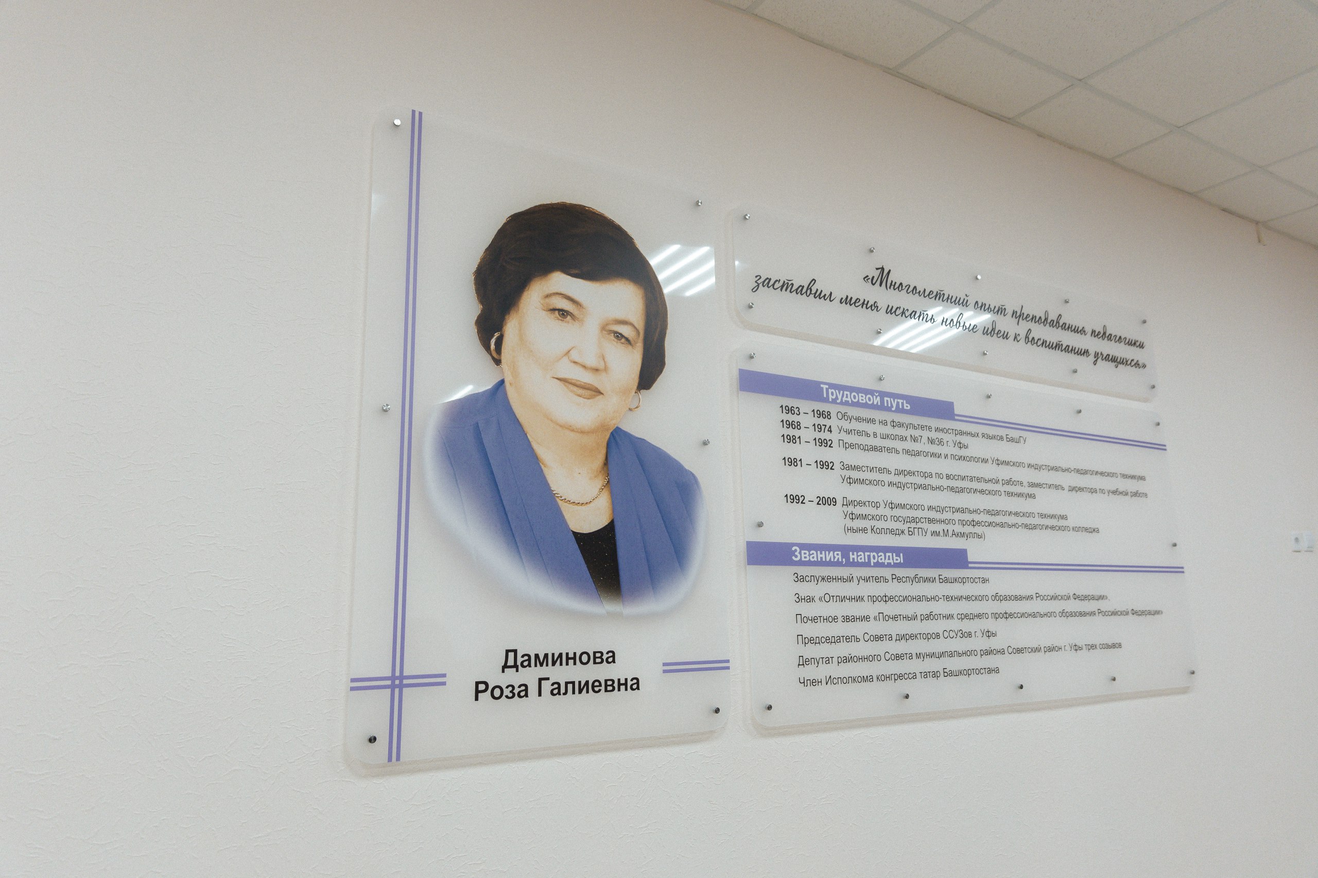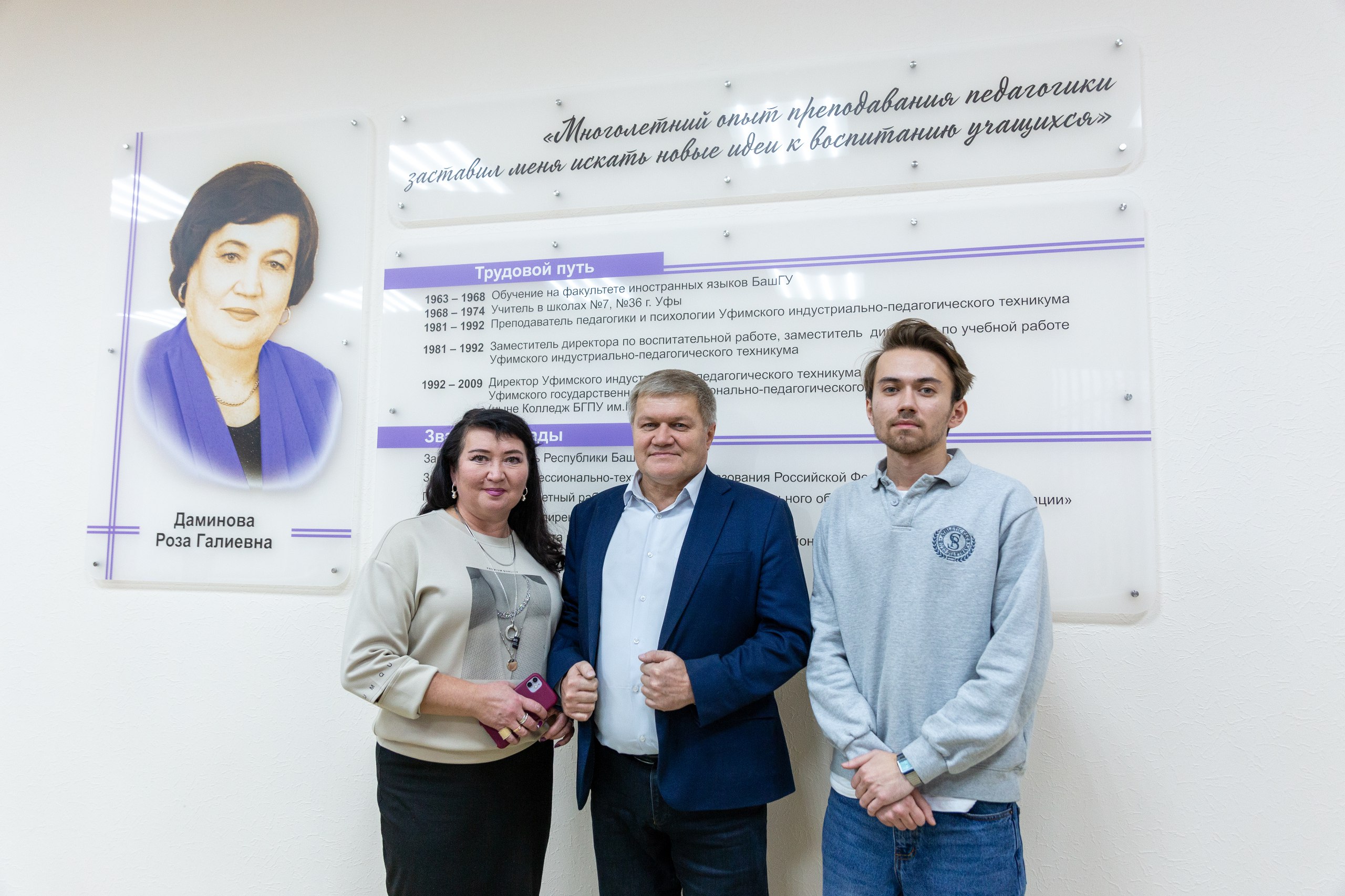В Колледже БГПУ имени М. Акмуллы, учебном заведении с более чем 80-летней историей, 2 декабря открыли аудиторию, названную в честь выдающегося педагога, наставника молодёжи Розы Галиевны Даминовой. В этот день в 1944 году начались первые учебные занятия в нынешнем учебном корпусе № 12, тогда - Уфимском железнодорожном техникуме.