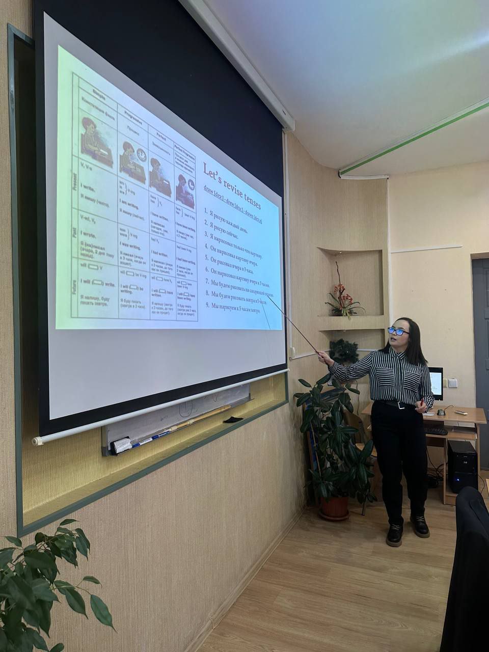 9 декабря в колледже состоялся открытый урок по английскому языку в рамках аттестации преподавателя Зайнуллиной Ильсияр Маратовны. Занятие прошло в группе 9ПНК-31П-23(27) и продемонстрировало высокий уровень подготовки как педагога, так и студентов. На уроке студенты активно работали над ключевыми навыками: • Совершенствовали произношение. • Изучали новую лексику и грамматические конструкции. • Составляли диалоги и уверенно выступали перед аудиторией. Оценка аттестационной комиссии На открытом уроке присутствовала аттестационная комиссия в составе руководителя Светланы Иосифовны Хабибуллиной и членов комиссии Натальи Витальевны Зайнеевой и Натальи Игоревны Казыхановой. Члены комиссии высоко оценили: • Активное участие студентов и их заинтересованность в материале. • Разнообразие использованных заданий. • Профессионализм преподавателя Ильсияр Маратовны в организации учебного процесса и эффективное применение современных методов обучения. Урок прошел успешно, вызвал положительный отклик у студентов и наглядно показал их значительный прогресс в изучении английского языка.