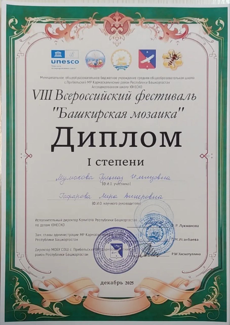 Золото «Башкирской мозаики»: студентка Колледжа БГПУ стала победителем Всероссийского фестиваля!