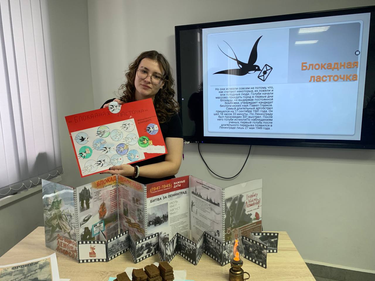 Особым моментом мероприятия стала творческая часть: студенты изготовили «Блокадную ласточку». Этот маленький жестяной значок в годы войны стал для ленинградцев ответом на нацистскую пропаганду, обещавшую, что в город «даже птица не пролетит». Ласточка стала символом надежды, весточки от близких и грядущей победы.