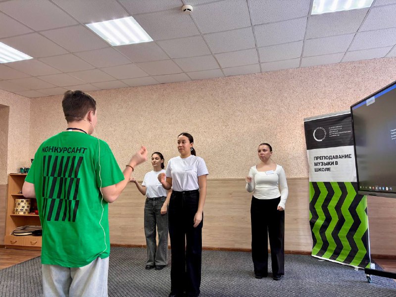 В первой половине дня конкурсанты продемонстрировали навыки владения методикой преподавания в рамках модуля «Учебное занятие по музыке». Перед участниками стояла задача провести интерактивное занятие с группой волонтеров. Эксперты оценивали умение презентовать творчество композиторов, анализировать музыкальные произведения, использовать игровые технологии и эффективно проводить вокально-хоровую работу.