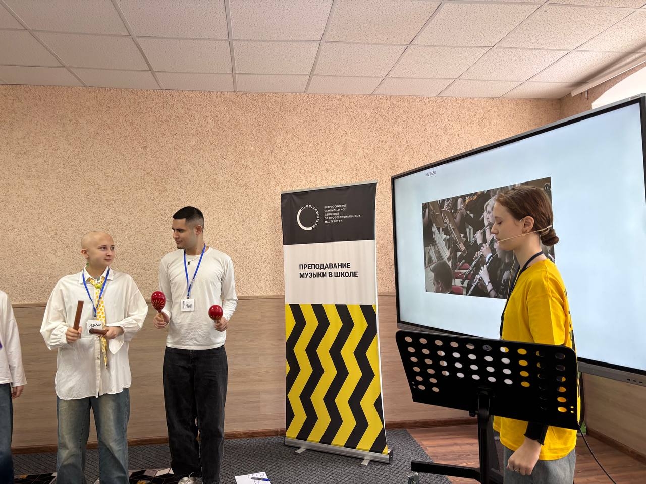 После обеда участники приступили к выполнению Модуля Д «Учебное занятие по музыке». Это серьезное испытание, где ребята пробовали себя в роли настоящих учителей: объясняли сложные темы, работали с аудиторией и показывали свои методические находки.