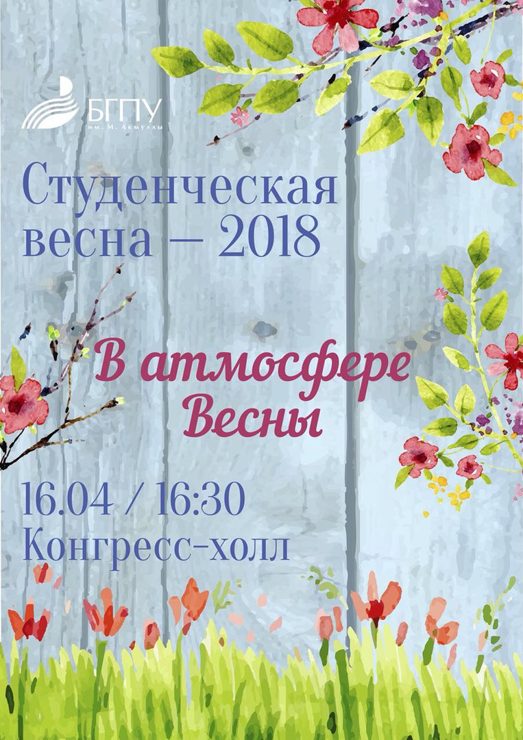 Приглашаем всех студентов и преподавателей Колледжа БГПУ им.М.Акмуллы на Гала-концерт "Студенческая весна- 2018", который состоится 16 апреля, в 16.30 в Конгресс-холле. Поддержим наших ребят!