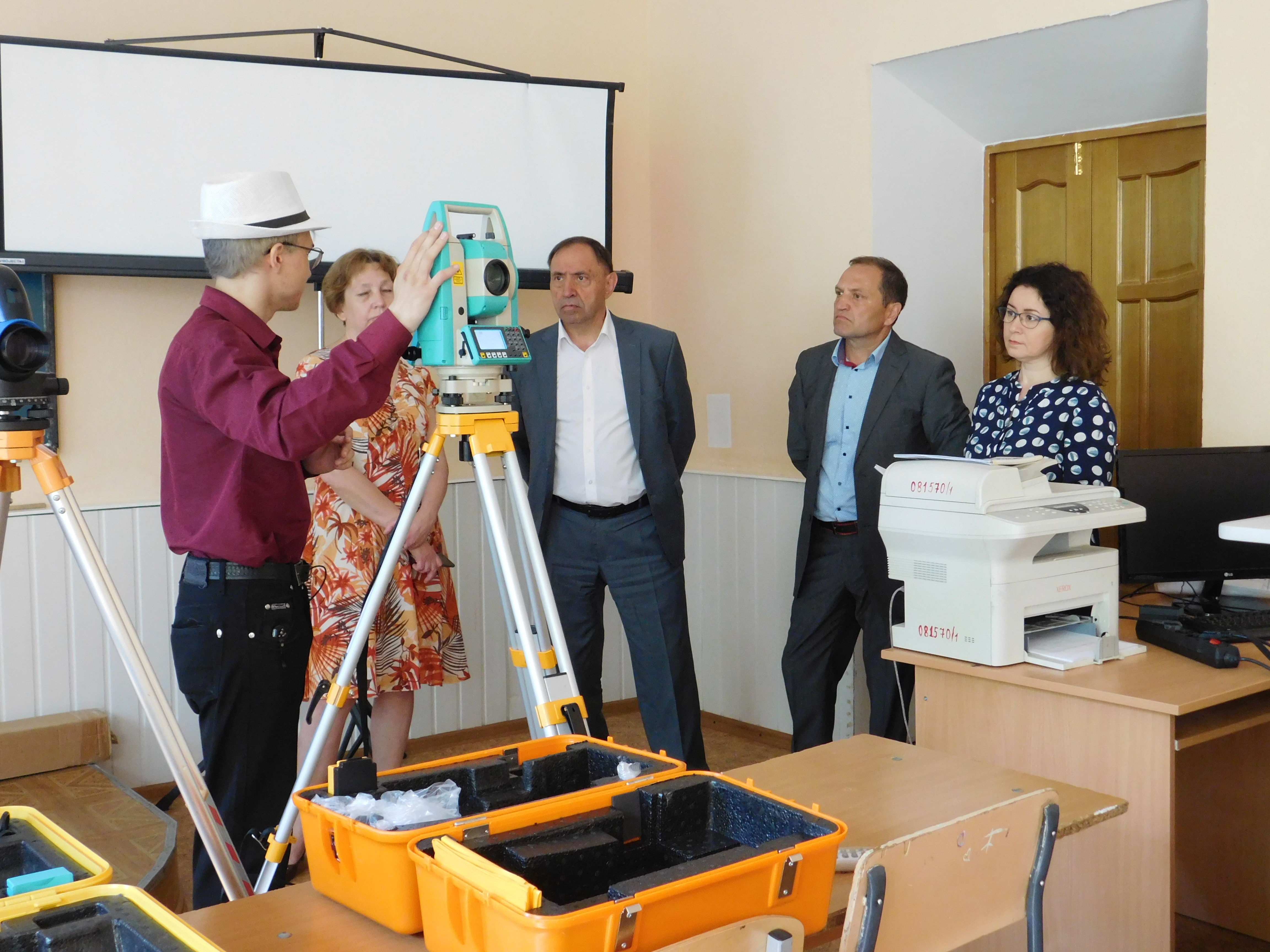 Почетным гостем на педагогическом совете стал ректор университета Раиль Мирваевич Асадуллин. Перед мероприятием, директор колледжа, М.А.Курунов представил ректору новые кабинеты и лаборатории. В зале 3D Раиль Мирваевич познакомился в мультимедийным 3D комплексом «Эврика», который используется преподавателями естественнонаучных дисциплин. В Лаборатории виртуального проектирования высокому гостю были показаны модели, выполненные в технологии дополненной реальности: объекты культурно-исторического наследия, обучающие и рекламные материалы. Большой интерес у Раиля Мирваевича вызвала геодезическая лаборатория, которую представили руководитель образовательной программы А.Р.Бикмаева и выпускник 2018 года Денис Фахреев. Высокую оценку получили модельные рабочие места различных служб гостиниц, которые предназначены для отработки профессиональных навыков студентов специальности «Гостиничный сервис».