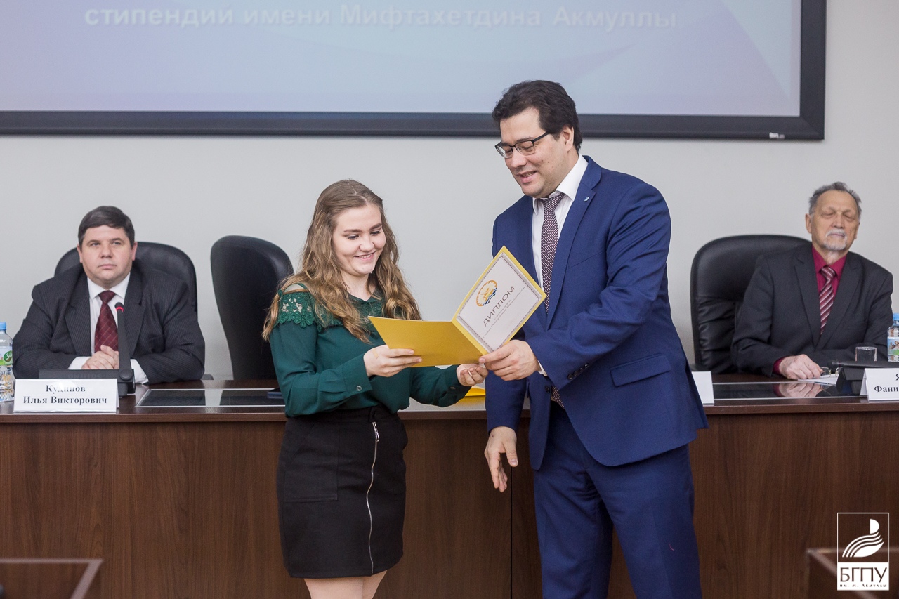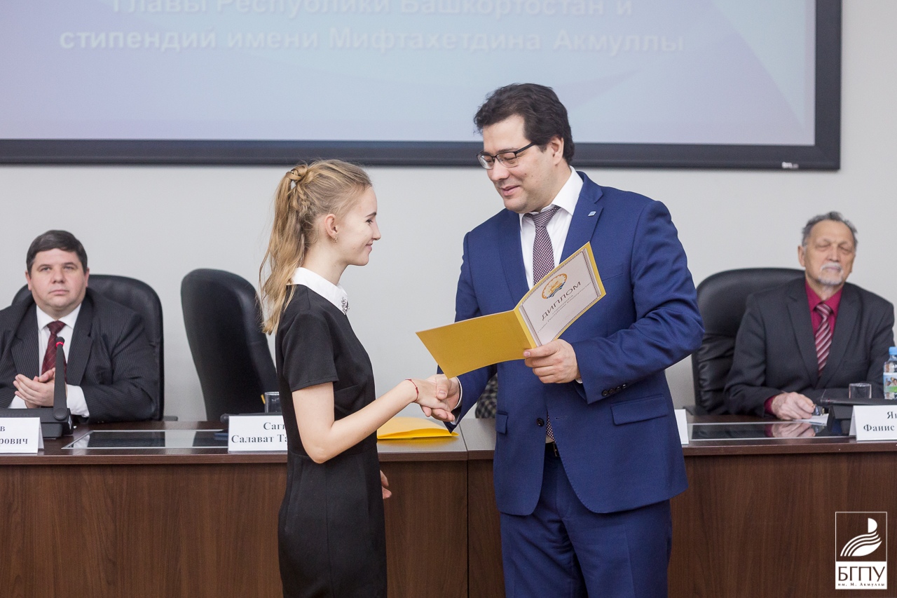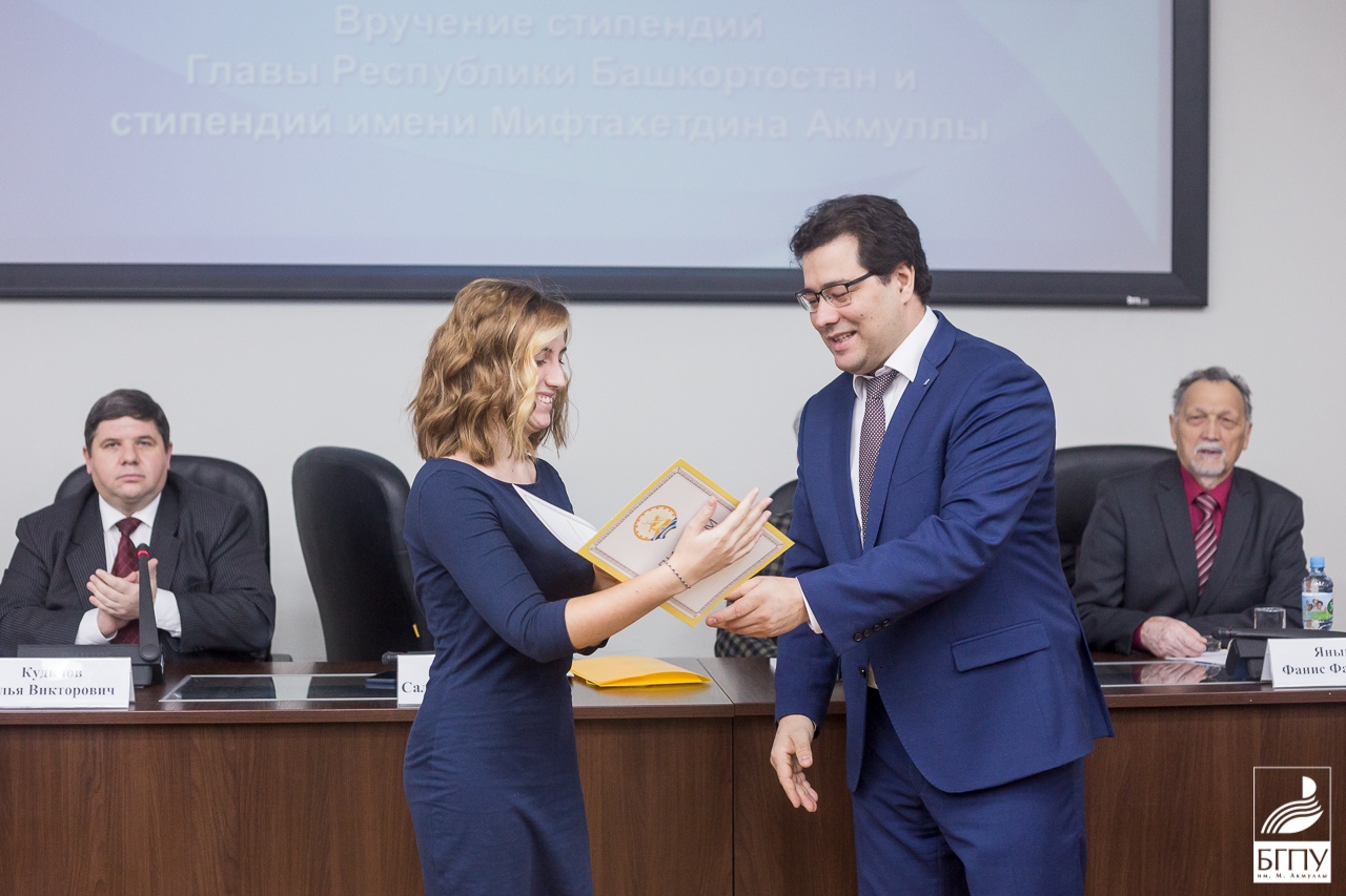 13 декабря состоялось чествование стипендиатов Главы Республики Башкортостан. Именных стипендий были удостоены студентки Колледжа БГПУ им.М.Акмуллы – Красько Юлия (специальность «Изобразительное искусство и черчение»), Алексеева Анастасия (специальность «Музыкальное образование») и Иванова Анастасия (специальность «Право и организация социального обеспечения»). Ежегодно стипендия Главы Республики Башкортостан учреждается в целях усиления социальной поддержки студентов, проявивших выдающиеся способности и добившихся высоких результатов в учебной и научной деятельности. Поздравляем наших студентов с высокой наградой и желаем дальнейших успехов!