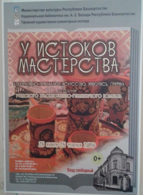 Студенты специальности «Изобразительное искусство и черчение» Колледжа БГПУ им. М.Акмуллы посетили выставку работ студентов Уфимского художественно - гуманитарного колледжа "У истоков мастерства", которая экспонируется с 25 января по 25 февраля в Национальной библиотеке им.З.Валиди. Специалист по выставочной деятельности библиотеки рассказала не только о выставке, но и провела экскурсию по дому купца Федора Евграфовича Чижова, в котором сейчас и располагается один из корпусов Национальной библиотеки республики. Рассказала много интересных фактов из биографии исторической личности Уфы. Студенты остались благодарными организаторам выставки.