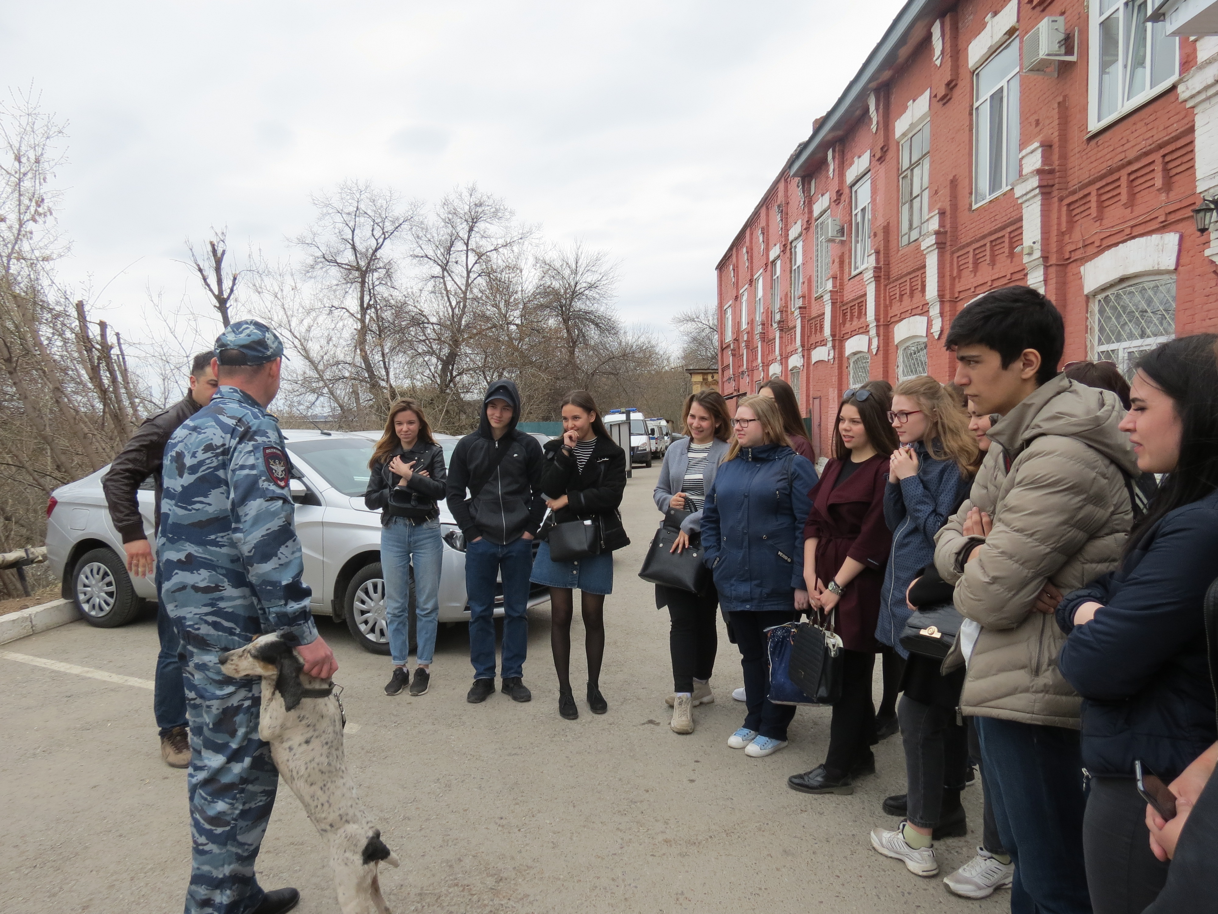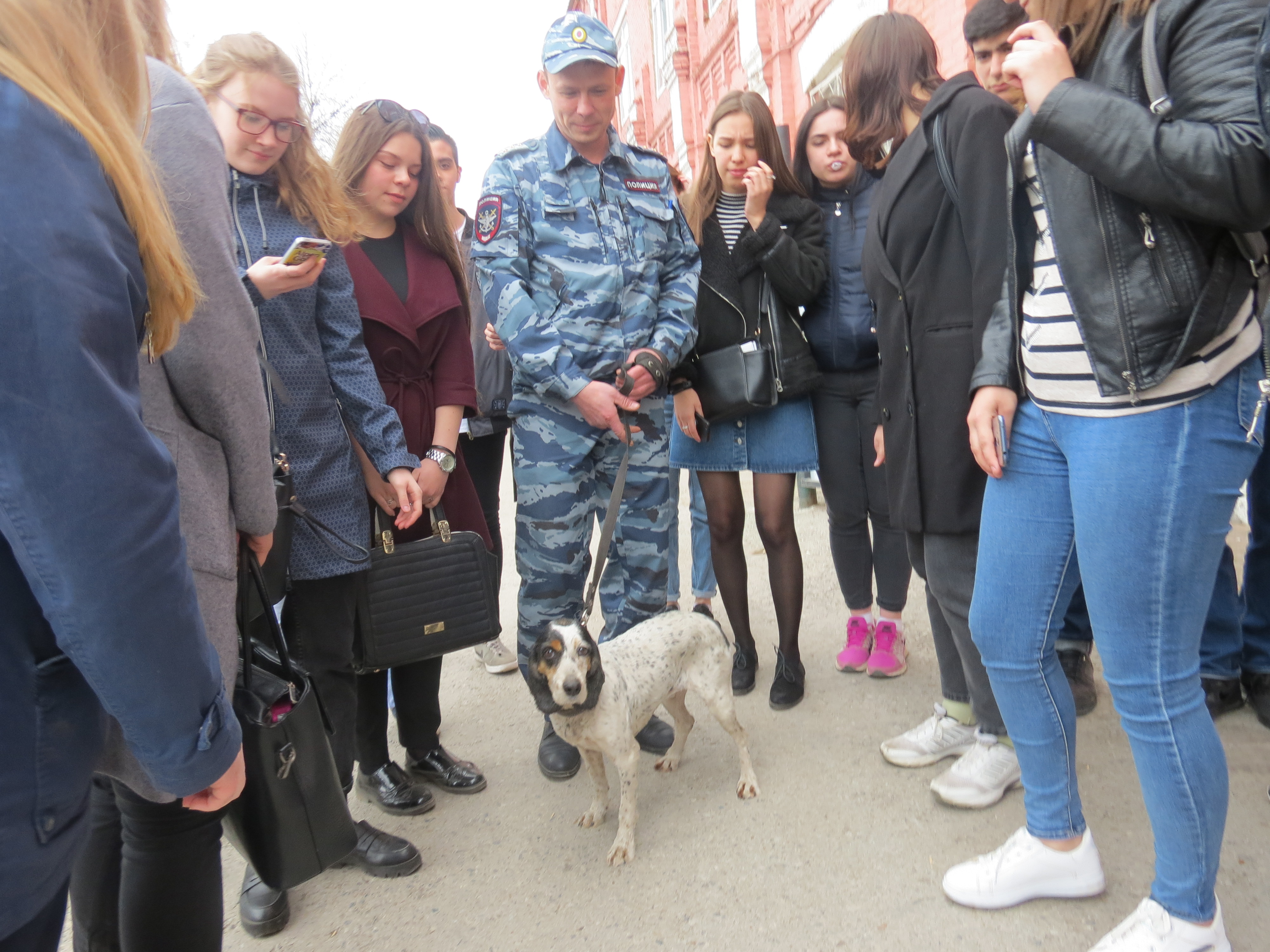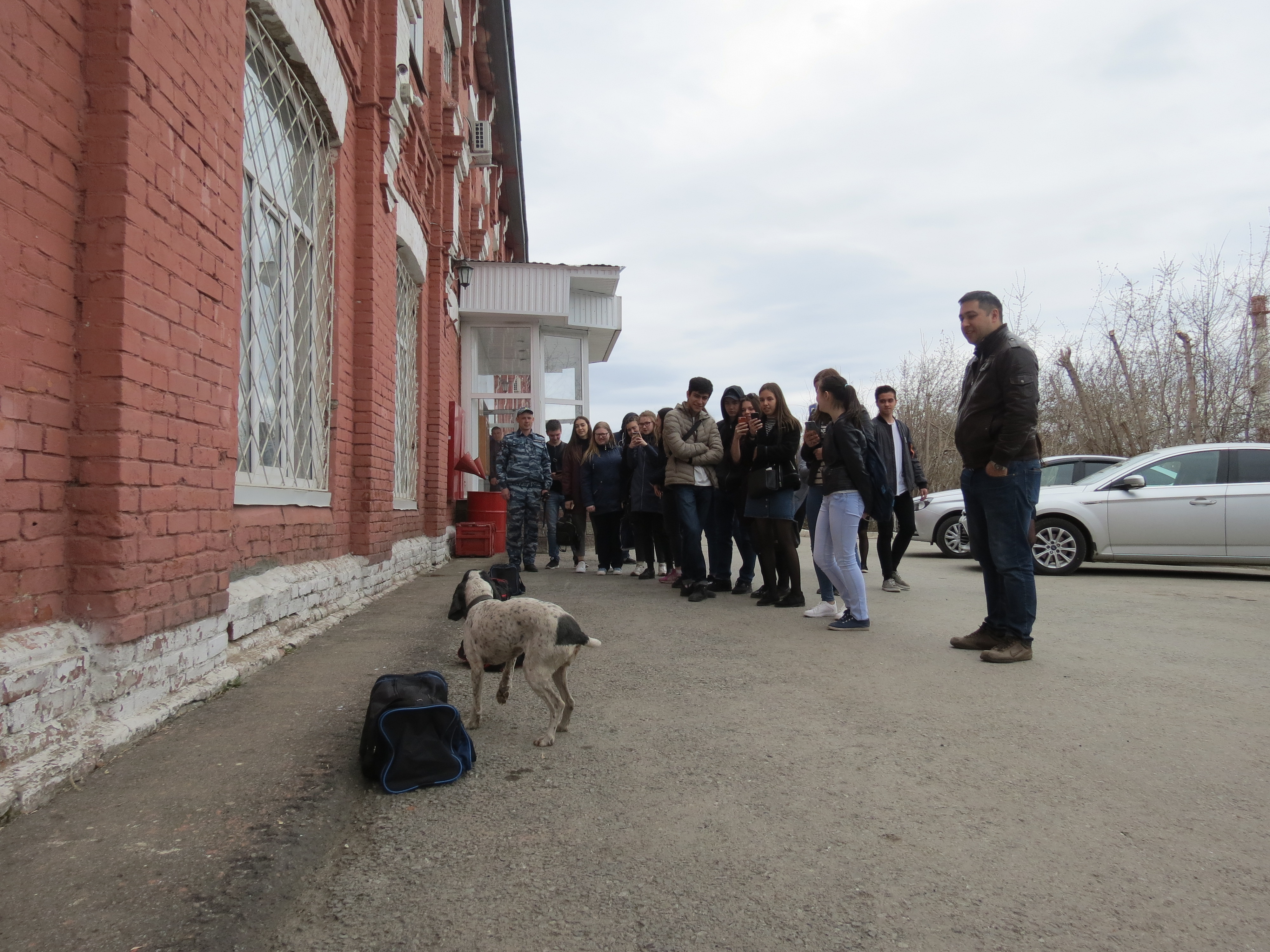 В завершении экскурсии студенты познакомились с четвероногим сотрудником полиции – кокер-спаниелем Холли. Кинолог рассказал ребятам, как дрессируют собак, для того, чтобы они стали полноправными сотрудниками полиции, а также показал, как быстро Холли способна найти наркотические средства в машине и среди множества чемоданов. Главная цель подобных встреч – напоминание студентам о случаях наступлении уголовной и административной ответственности и о