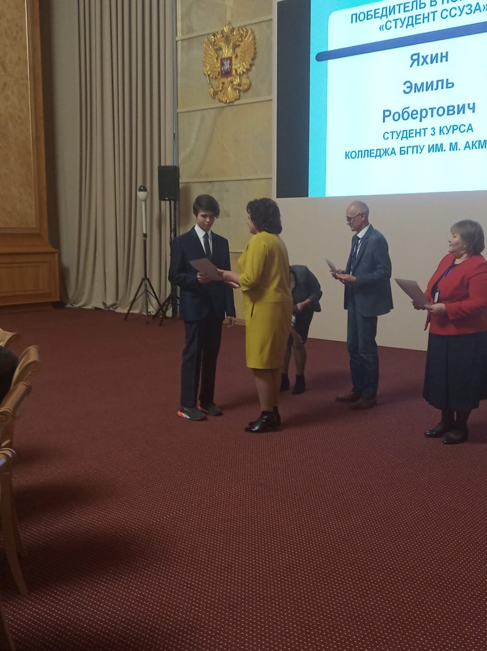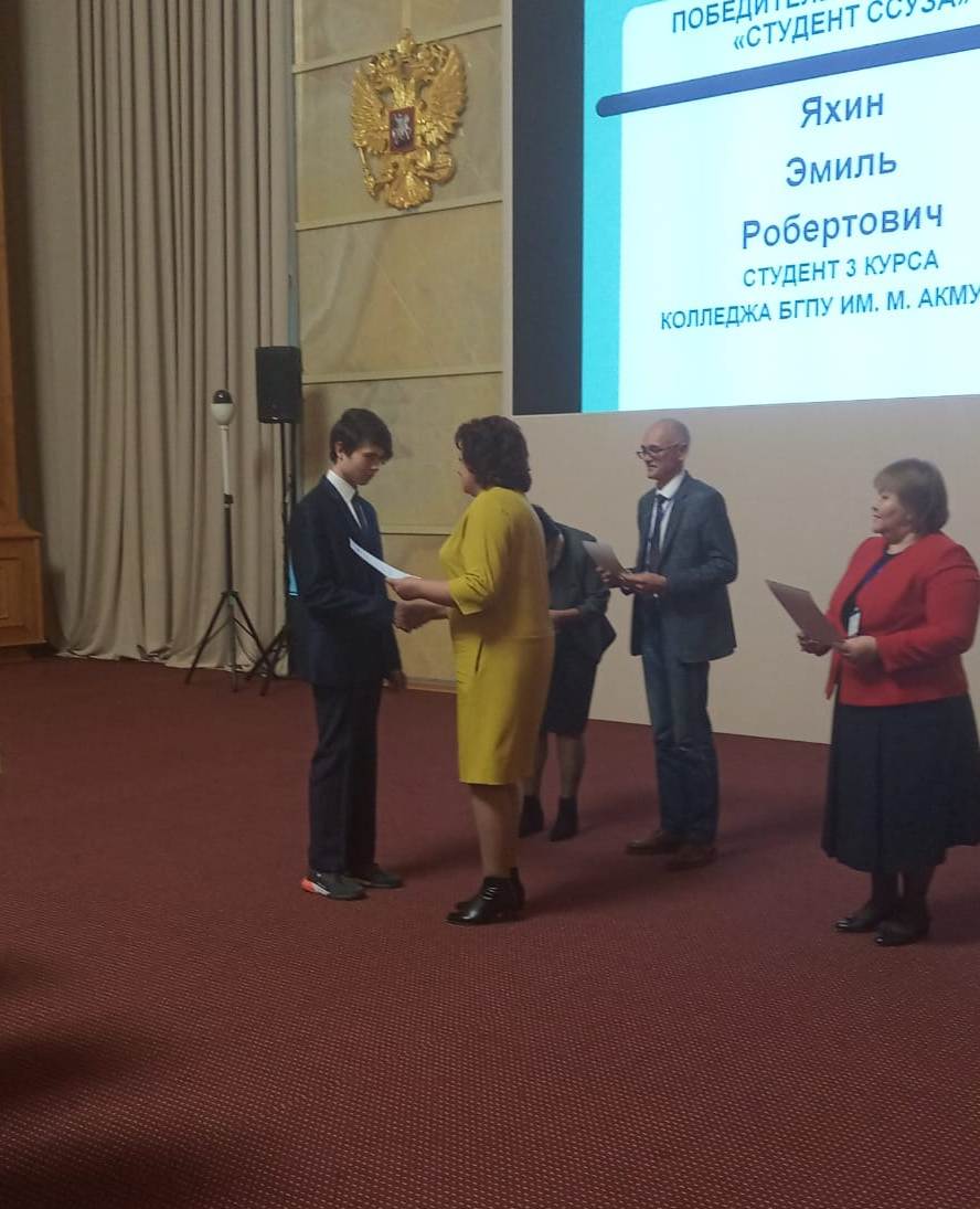 Студент Колледжа БГПУ им.М.Акмуллы удостоен премии Р.Ш.Кашапова за высокие достижения в учебе и научно-исследовательской работе.