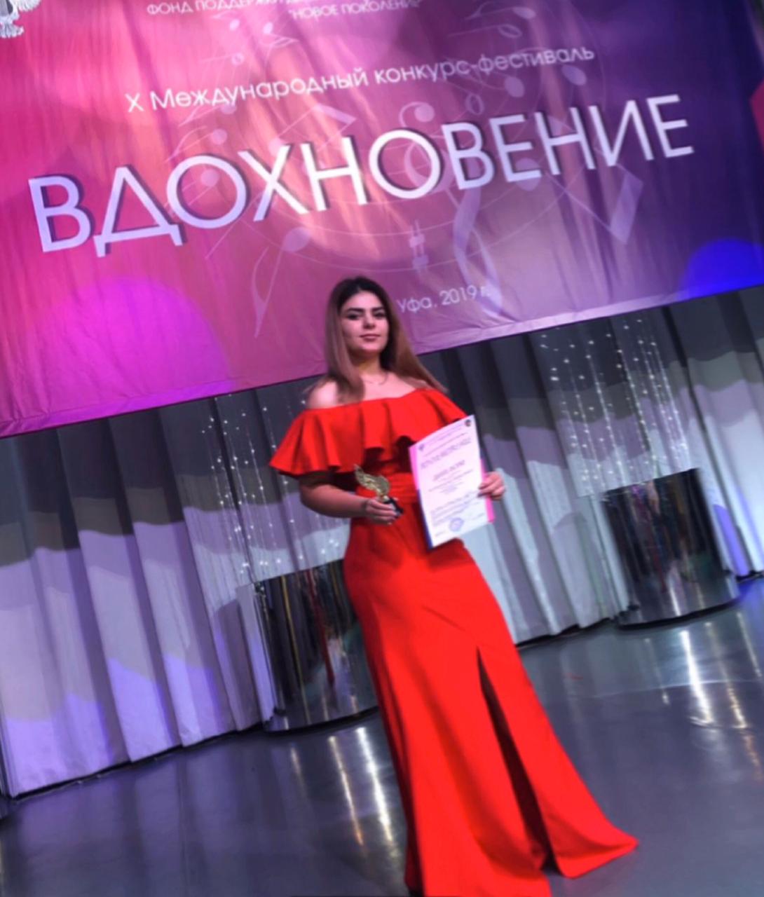 Студентка специальности "Музыкальное образование" Рипсимэ Мартиросян вновь покоряет сердца московского жюри X Международного конкурса-фестиваля "Вдохновение" и получает диплом  Лауреата I степени в номинации "Вокал эстрадный". " Каждое участие в конкурсе-это работа над новой вокальной программой, - делится Рипсимэ, - большой честью для меня стало не только выступление в конкурсный день, но и приглашение спеть на Гала-концерте, ведь выступление на разных  концертных площадках это не только огромное удовольствие, но и новый опыт!" Поздравляем, Рипсимэ, с новой победой и желаем новых песен и новых побед на пути к вокальным вершинам!