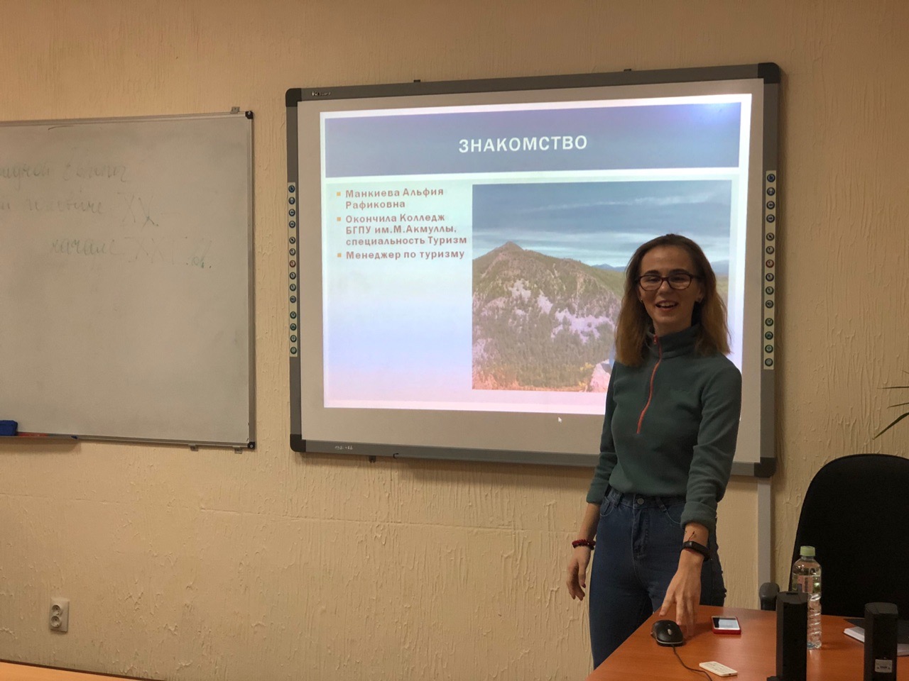 12 ноября в колледже прошел мастер-класс выпускницы специальности «Туризм» Манкиевой Альфии Рафиковны со студентами третьего курса на тему «Как стать гидом горного туризма». Альфия окончила колледж 2018 году. Завершив обучение, работала по своей профессии менеджером по туризму, и через некоторое время открыла свою туристическую фирму. Параллельно она в выходные дни работает гидом. Водит туристов по известным горам Башкортостана. В день она 5-6 раз поднимается на горы, и знакомит туристов с достопримечательностями. В своем мастер-классе «Как стать гидом горного туризма»» она раскрыла все секреты гида. Дала рекомендации по составлению плана похода и соблюдению техники безопасности. Рассказала о главных требованиях, предъявляемых к организации походов.В завершение Альфия провела мини-игру, в которой с удовольствием приняли участие все участники мероприятия. Благодарим  за очень полезный мастер-класс для наших студентов. Желаем дальнейшего процветания процветания!