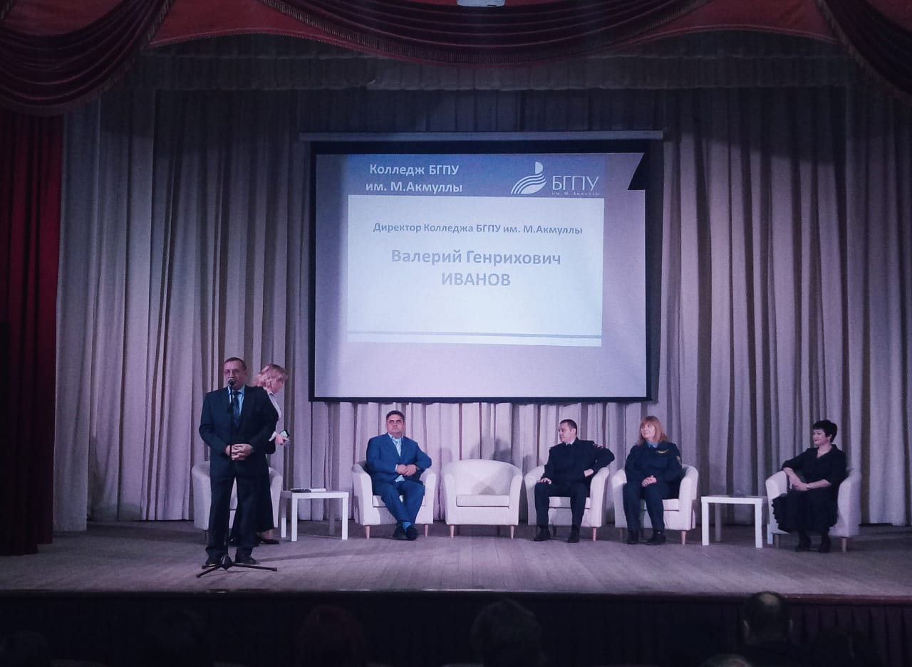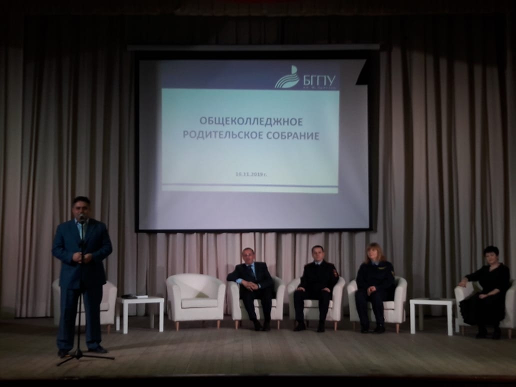 16 ноября в Колледже БГПУ им.М. Акмуллы состоялось собрание родителей студентов-первокурсников. На собрании присутствовали приглашенные гости, администрация университета и колледжа: проректор по экономической деятельности и развитию имущественного комплекса БГПУ им.М.Акмуллы Аскар Асхатович Фазлыев, директор Колледжа БГПУ им.М. Акмуллы Валерий Генрихович Иванов, начальник ОДН ОП №7 Советского района г. Уфы, подполковник полиции Радмил Ринатович Тазетдинов, инспектор Центра общественной безопасности по Советскому району г. Уфы Виктория Евгеньевна Низамова, заместитель директора Колледжа БГПУ им. М.Акмуллы по учебно-методической работе Альбина Адонисовна Юферова, заместитель директора Колледжа БГПУ им. М.Акмуллы по учебно-воспитательной  работе Наталья Николаевна Гардамшина.