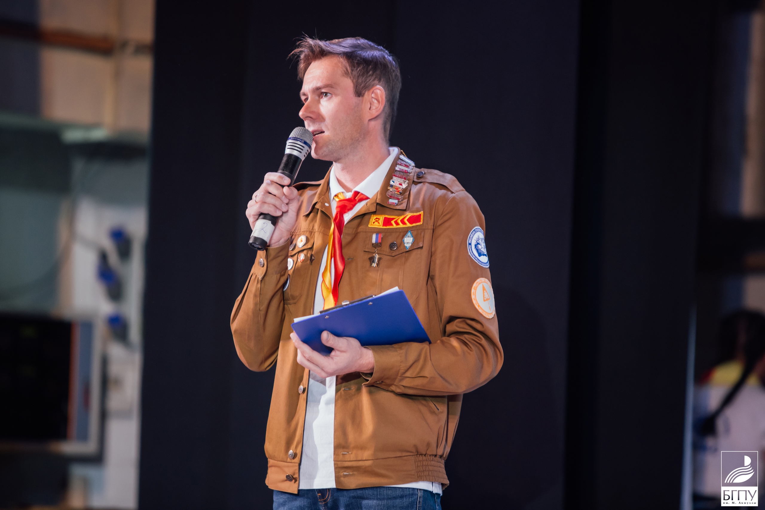 Началась встреча с приветствия руководителя производственной педагогической вожатской практики вуза, директора Республиканского центра подготовки вожатых «Перспектива» им. Е. Поспеловой Алексея Дударенко, который выступил и в качестве соведущего встречи. Он рассказал об истории создания и работе университетского Центра подготовки вожатых, отметил большую роль в этом кафедры педагогики.
