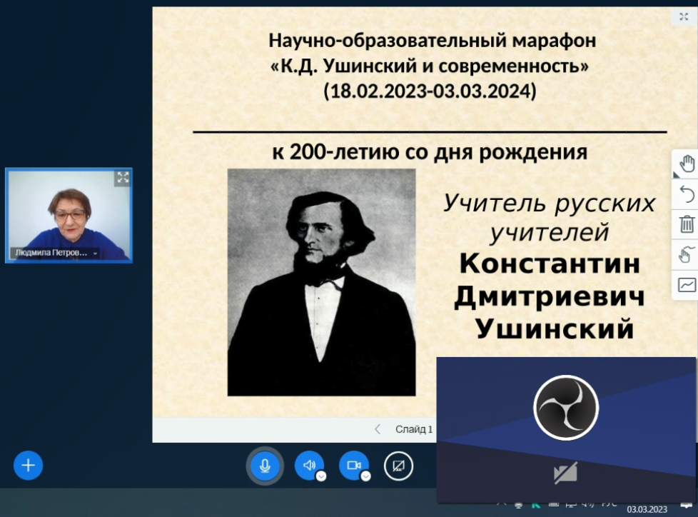 3 марта 2023 г. состоялась открытая интерактивная лекция «Идея народности воспитания в педагогическом наследии К.Д. Ушинского».
