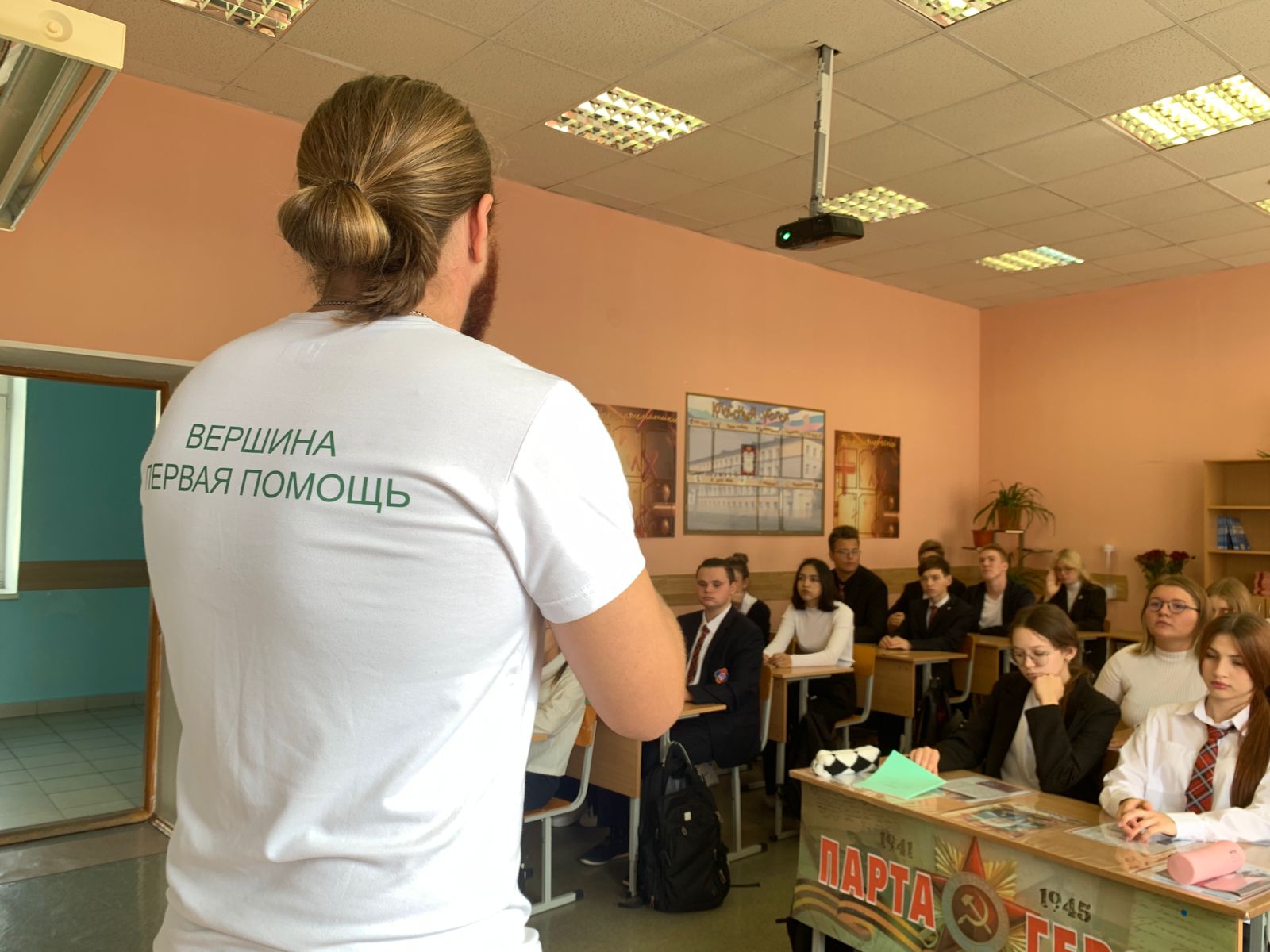 Боец отряда Максим Антонов провëл в Школе 61 интересный урок для учеников 10 класса по оказанию первой помощи.